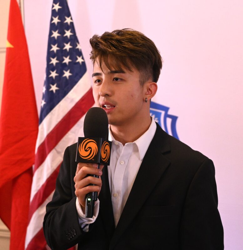 美国留学生协会联盟副主席董智豪接受记者访问