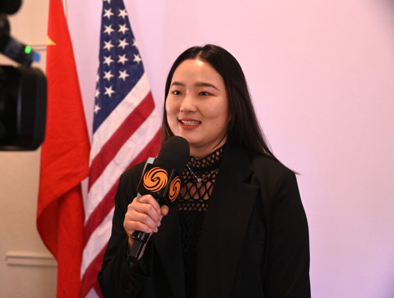 美国亚裔法律协会志愿者代表赵芹接受记者访问