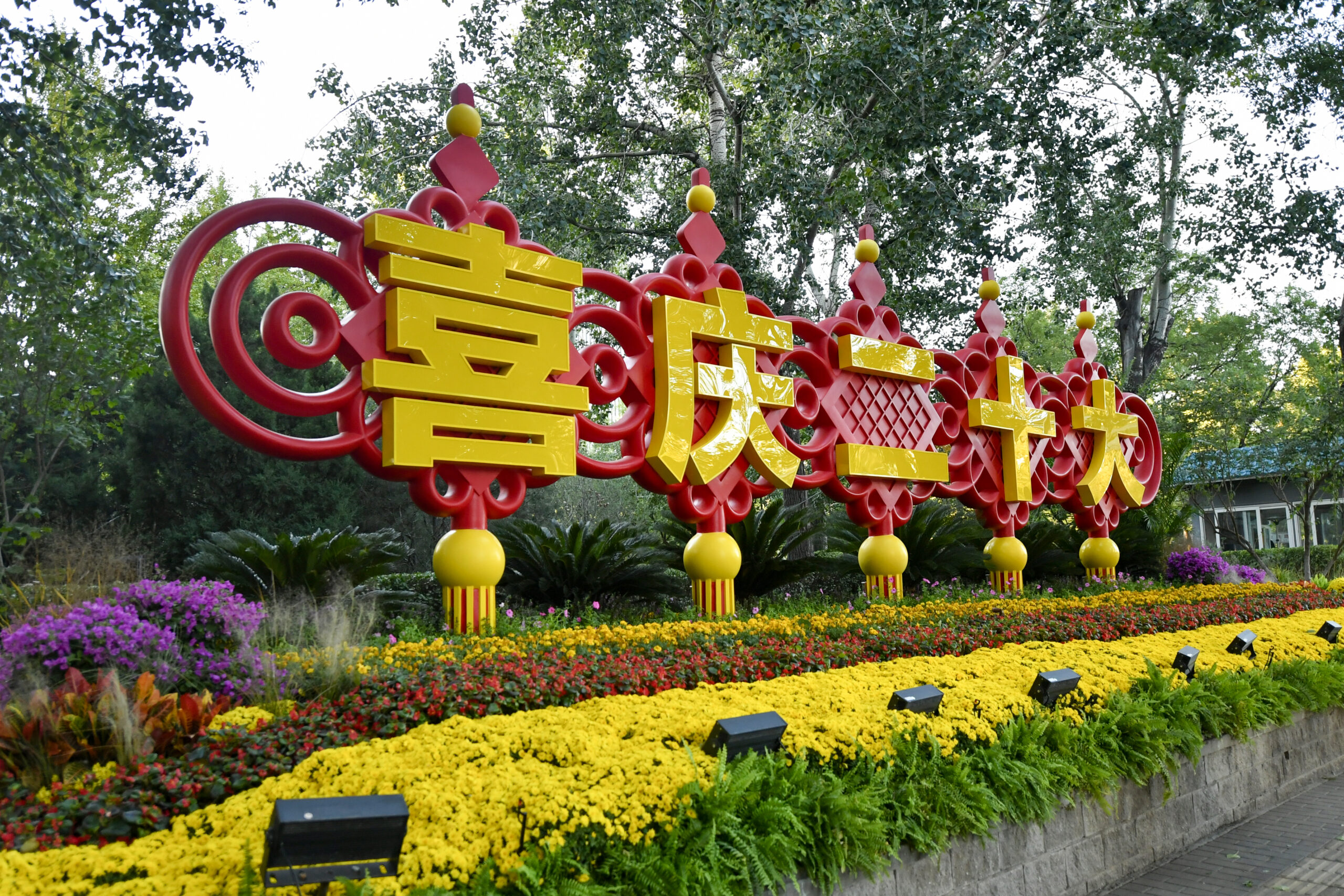 10月16日,位于北京市京西宾馆西门的“喜迎二十大”花坛转换成为“喜庆二十大”。