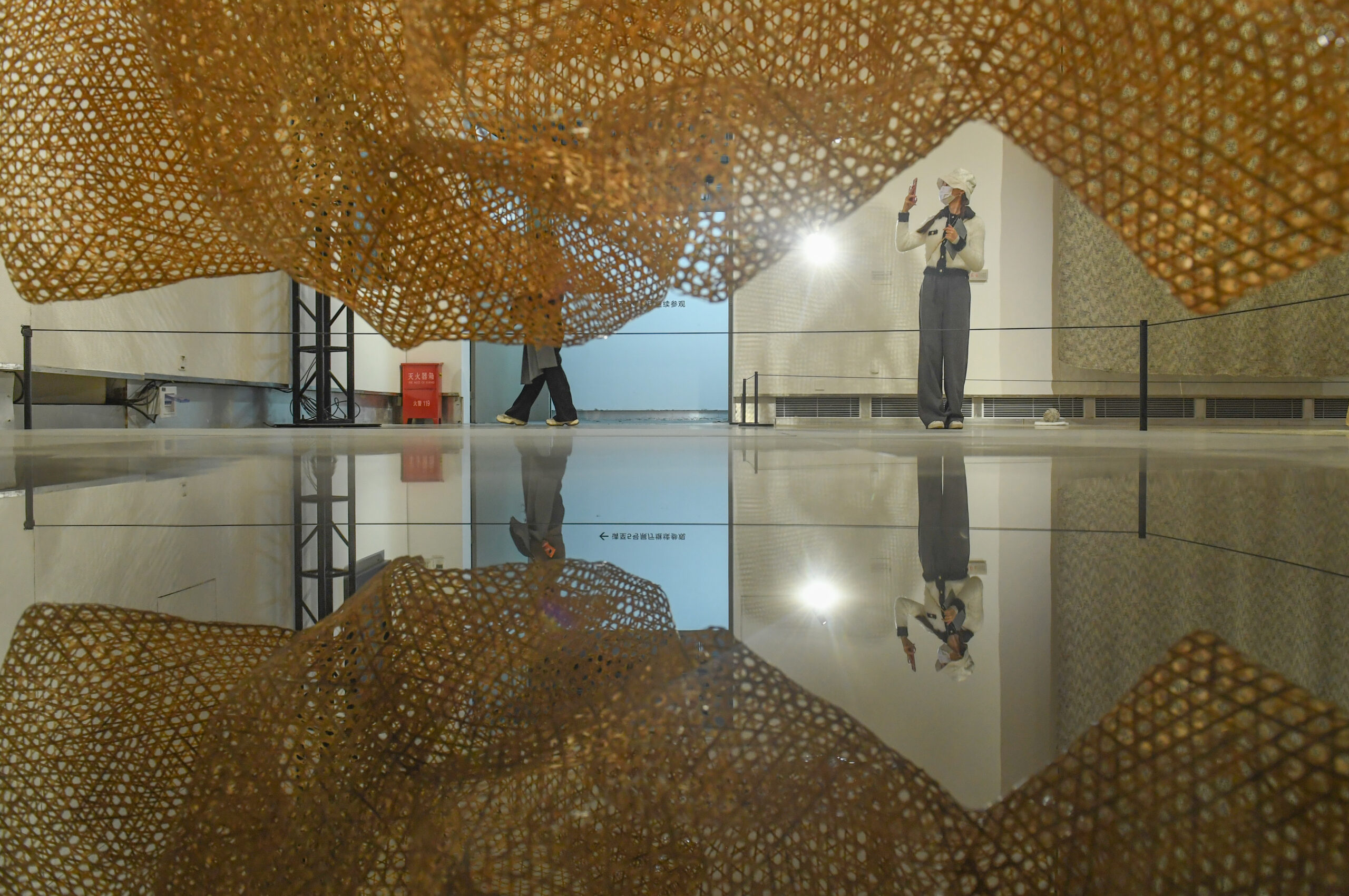 10月19日,游人在参观纤维艺术作品《路径》。近日,第四届杭州纤维艺术三年展在浙江杭州西湖边开展,众多颇具设计感的纤维主题艺术作品吸引观众。 未经允许不得转载:城市新闻网icitynews » 浙江杭州纤维艺术展:颇具设计感的装置吸引年轻人