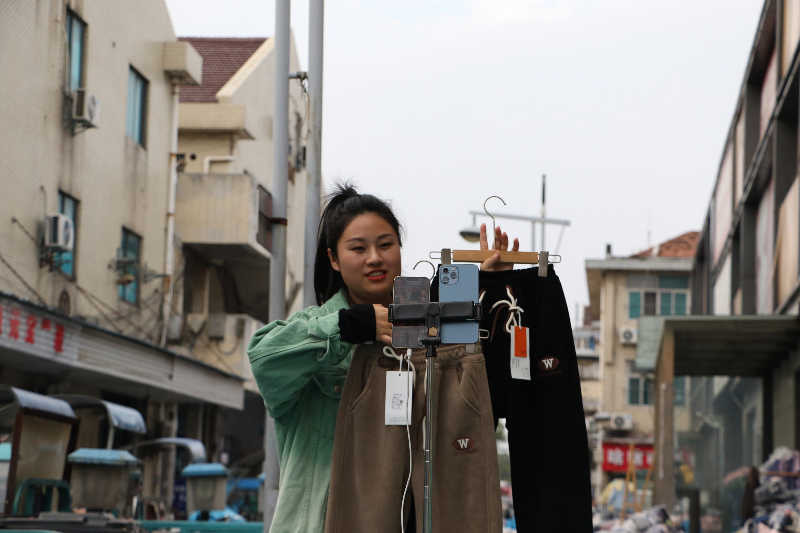 11月3日,童装企业主在直播介绍产品。“双十一”将至,被誉为“中国童装之都”的浙江省湖州市吴兴区织里镇一片繁忙景象。该镇共有童装类企业1.4万余家,年产各类童装14.5亿件(套),占据中国童装市场三分之二。