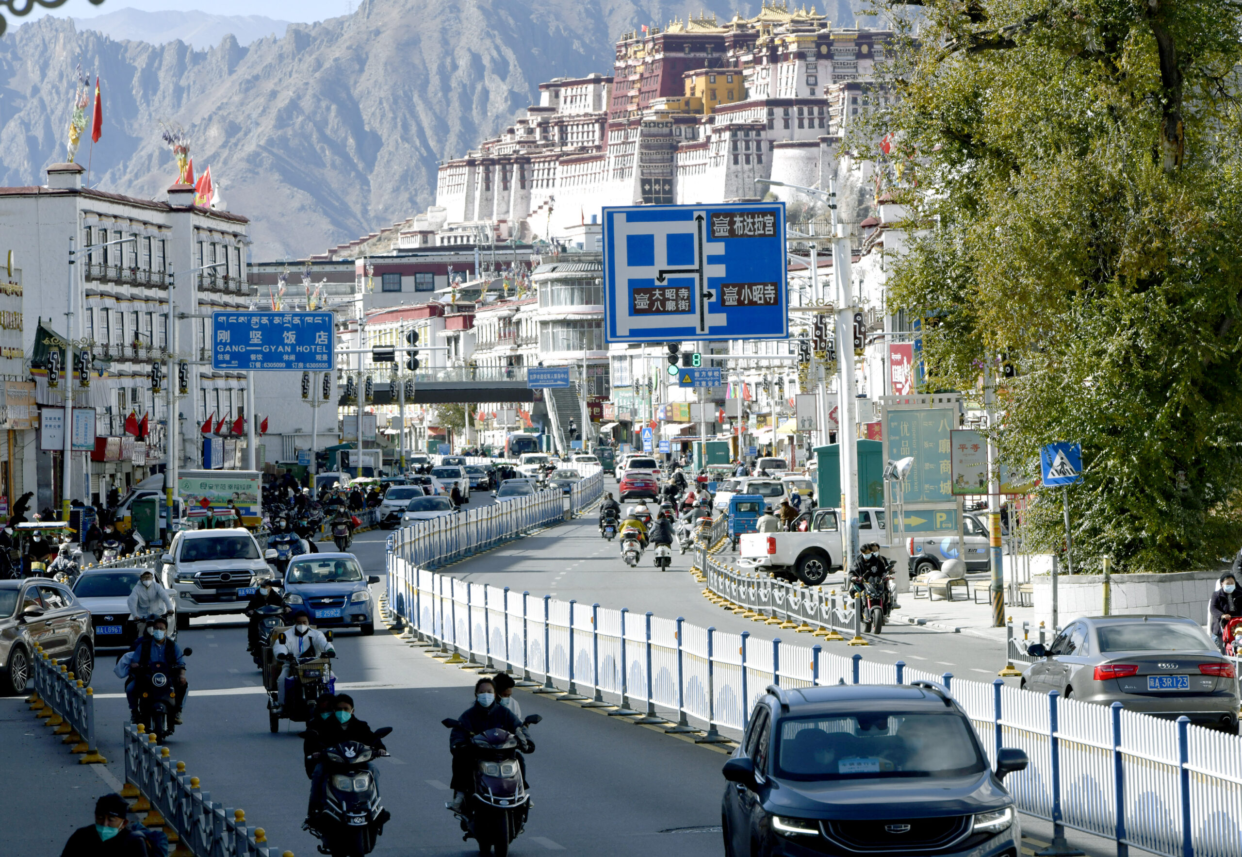 11月17日,拉萨市北京东路车流人流渐多。近日,在拉萨八廓街道、吉日街道、吉崩岗街道等主城区及市区主要路段,车流量、人流量逐步恢复。随着拉萨市新冠肺炎疫情防控形势持续向好,各行各业有序复工复产,民众生活逐步正常,街头巷尾的“烟火气”渐浓。