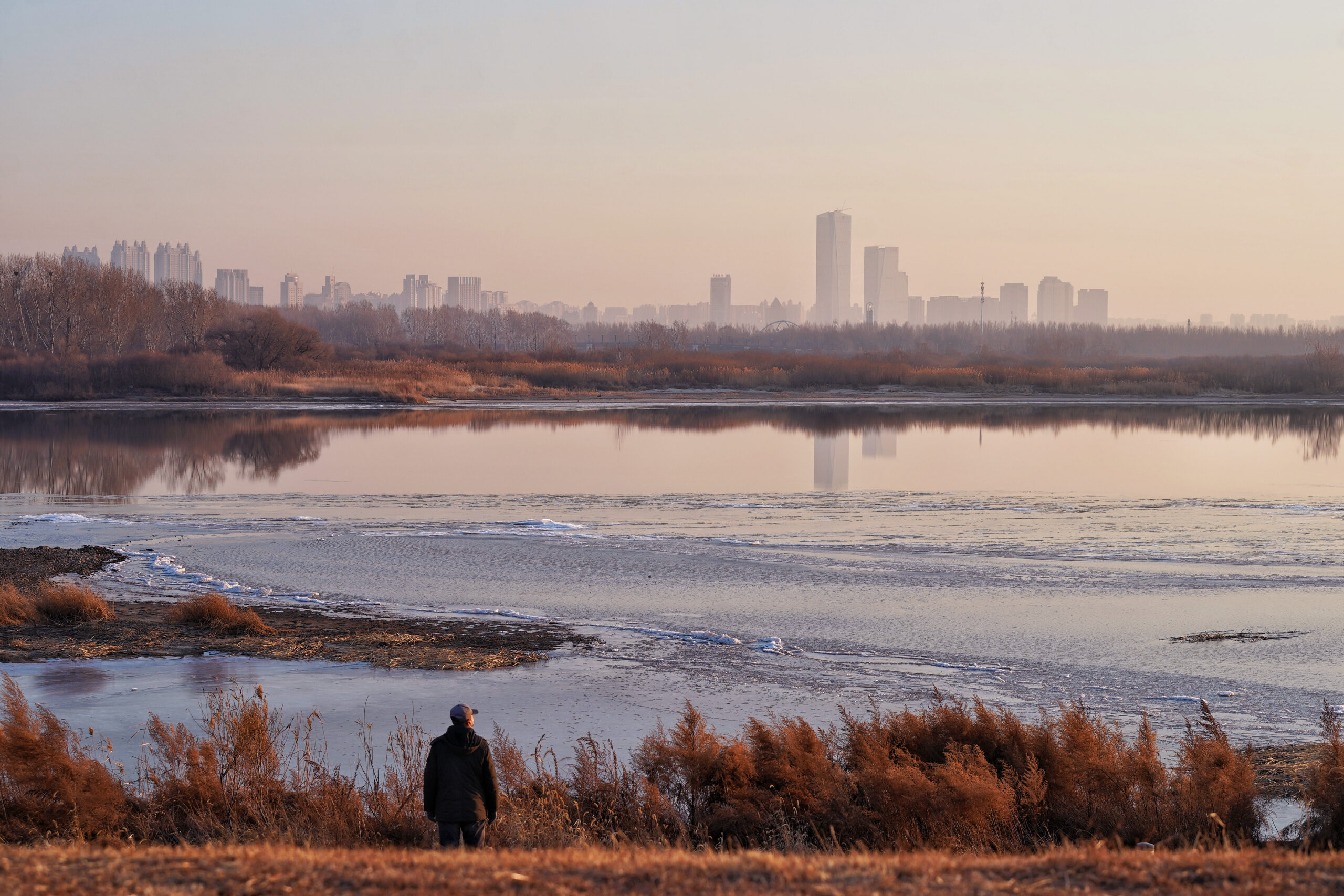11月22日,松花江哈尔滨段,市民观赏“半冰半水”的江面。因近日气温持续下降,松花江哈尔滨段部分江面已被冰层覆盖,江面“半冰半水”,吸引市民观看。 未经允许不得转载:城市新闻网icitynews » 松花江哈尔滨段“半冰半水” 景观吸引市民