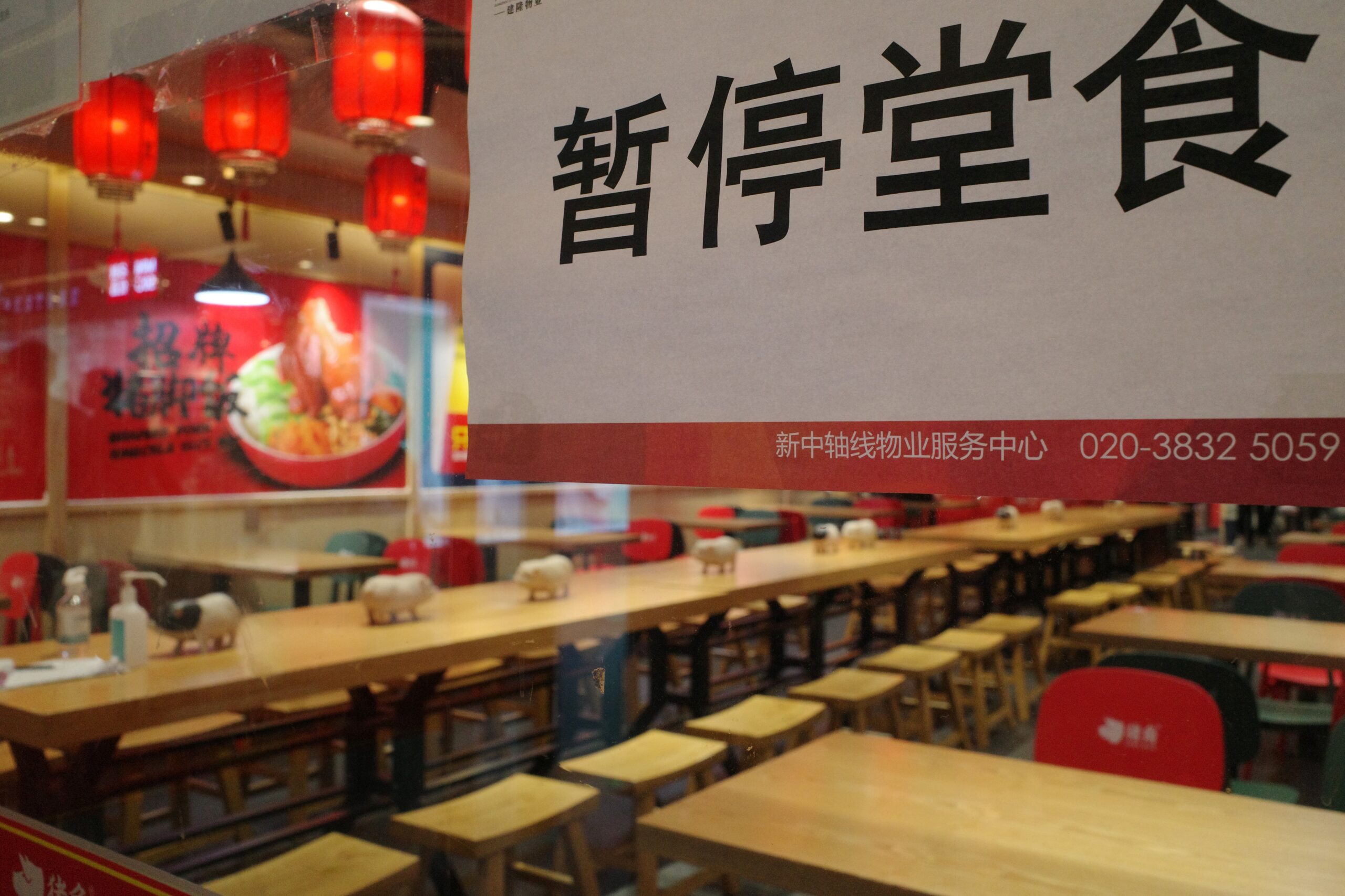 11月22日,广州市天河区,花城广场一店铺提示暂停堂食。11月21日零时起,广州市天河区辖内社会餐饮服务单位(含饮品店、小吃店、早餐店等)暂停堂食,只提供到店自取、网络订餐服务。