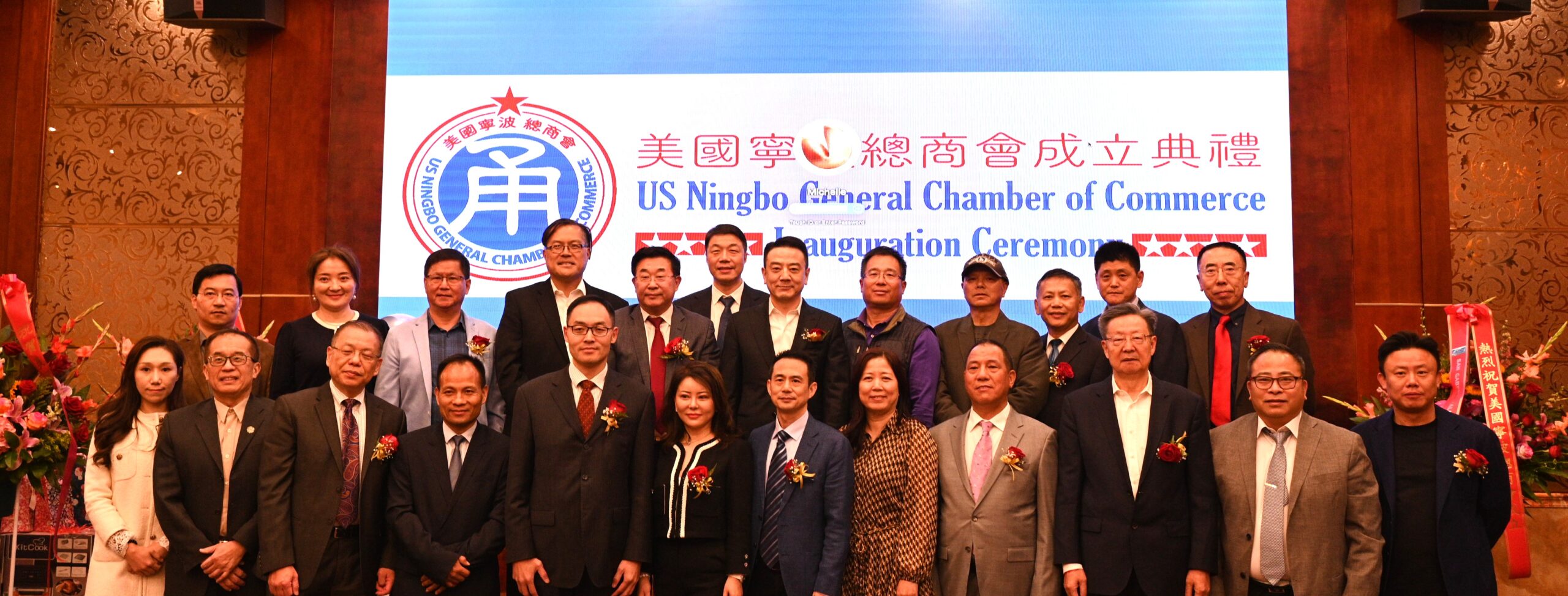 城市新闻 11月 25日哈仙达岗报导,美国宁波总商成立典礼在凯悦华达大酒楼盛大举行,虞芷棋(Michelle)出任美国宁波总商会首任会长,并发表热情洋溢的就职演说,受到一百多位来宾的热烈欢迎。中国驻洛杉矶总领事馆侨务领事安明栓、加州众议员方树强(Mike Fong)、圣盖博市长丁言愉、核桃市长伍立伦、浙江省驻美商务代表处首席代表吴航、南加州华人华侨联合总会会长蔡成华、全美浙江总商会会长林光等出席,并向虞芷棋(Michelle)会长颁发贺状,成立典礼热烈欢乐。美国宁波总商会会长虞芷棋(Michelle)、理事长章伟达、监事长陈巍、常务副会长孙浩城、副会长李艷芬、秘书长卢美含集体登台亮相,引起热烈掌声。李嘉璧主持典礼。