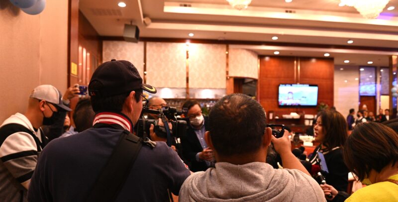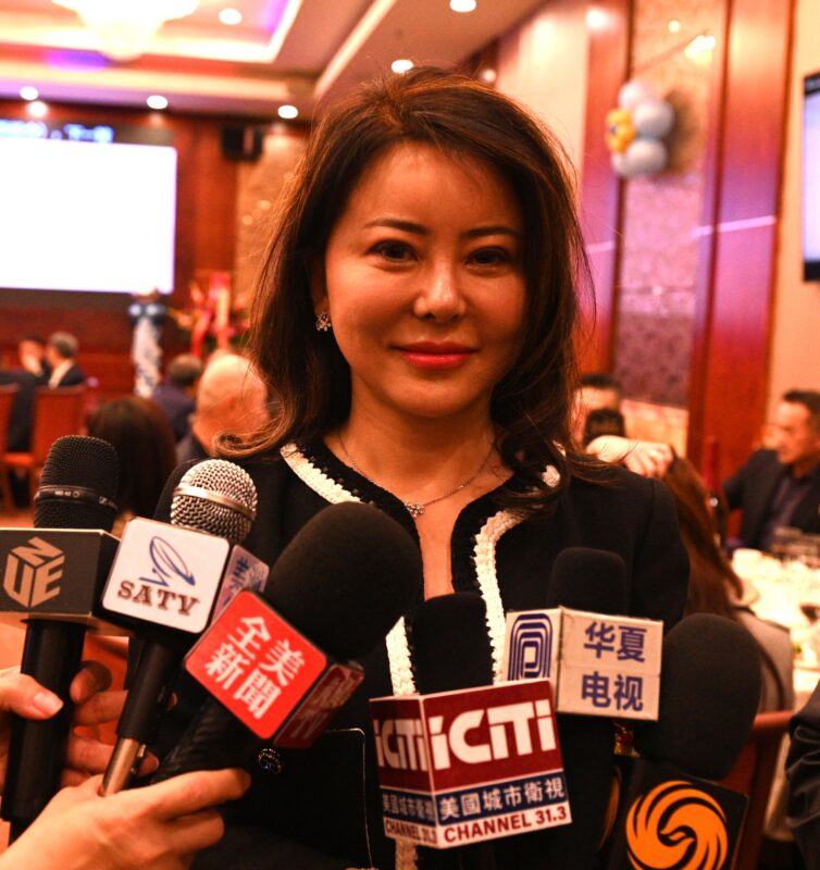 美国宁波总商会会长虞芷棋(Michelle)接受各大媒體記者訪問