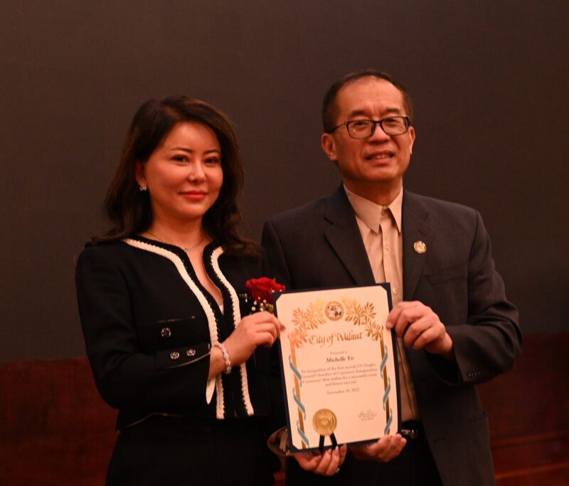 核桃市长伍立伦向虞芷棋(Michelle)会长頒賀狀