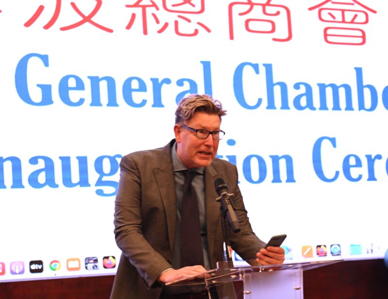南加州华人华侨联合总会会长蔡成华致词表示,首先代表南加州华人华侨联合总会以及美国江苏总商会对美国宁波总商会的成立致以最诚挚的祝贺。同时,也祝贺虞芷棋当选为首任会长。宁波在中国是一个非常重要的城市,也是中国最早14个沿海开放城市之一,经济地位十分重要。宁波的GDP超过了一万亿,达到一点四万亿,人口接近一千万,是一个副省级的市。宁波在海外的乡贤、企业家非常多,而且事业都做的非常的好,宁波对外开放程度非常深,对美国的贸易投资,双向的贸易投资也是逐年增长。宁波在美国需要一个平台,可以凝聚旅居在美国的宁波籍企业家,共享资源,抱团打拼。