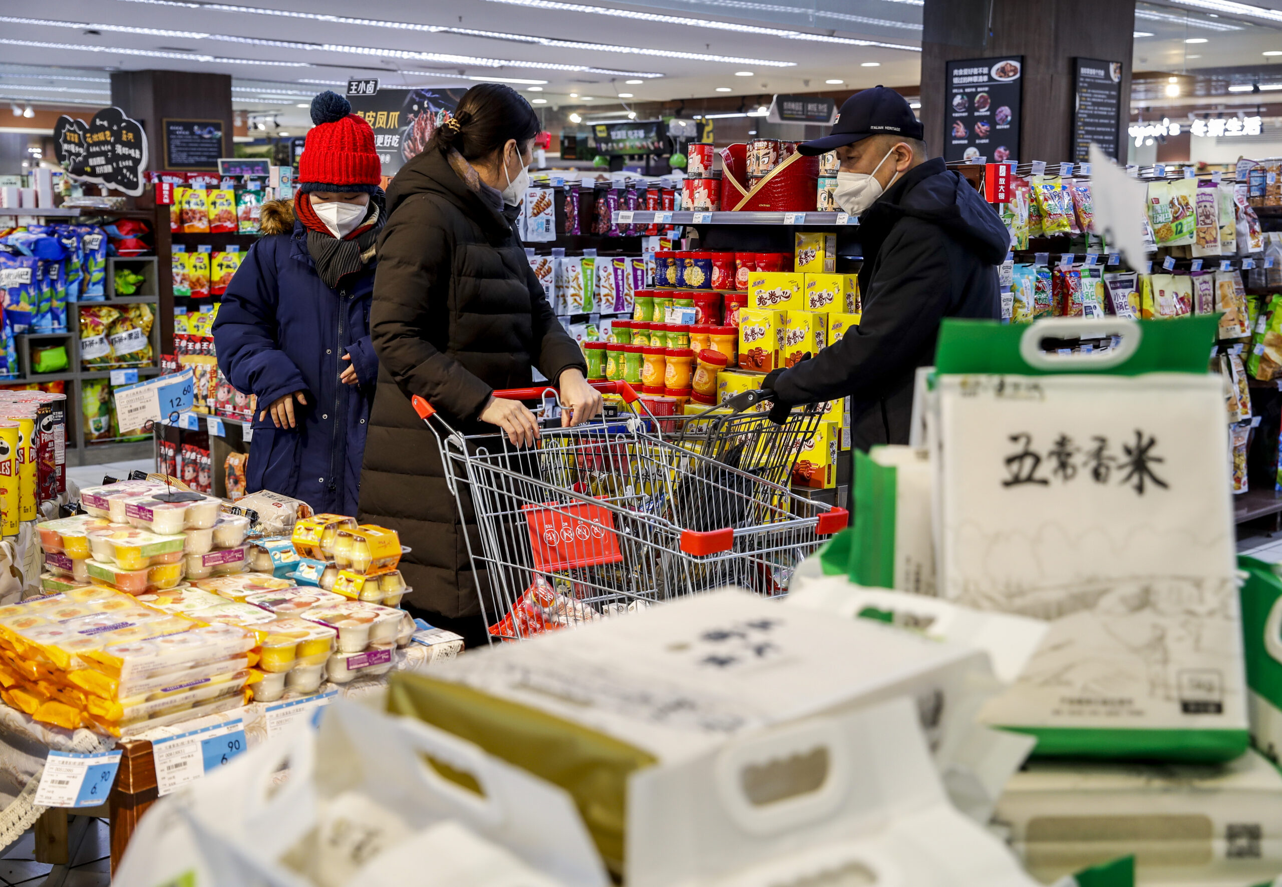 12月5日,新疆乌鲁木齐市沙依巴克区友好城市奥莱购物中心,市民在商场超市里选购所需的商品。随着乌鲁木齐市进一步加大复工复产、复商复市力度,该市大型商场、超市、商业综合体、大型综合市场及专业性市场等经营性场所已陆续向市民开放。