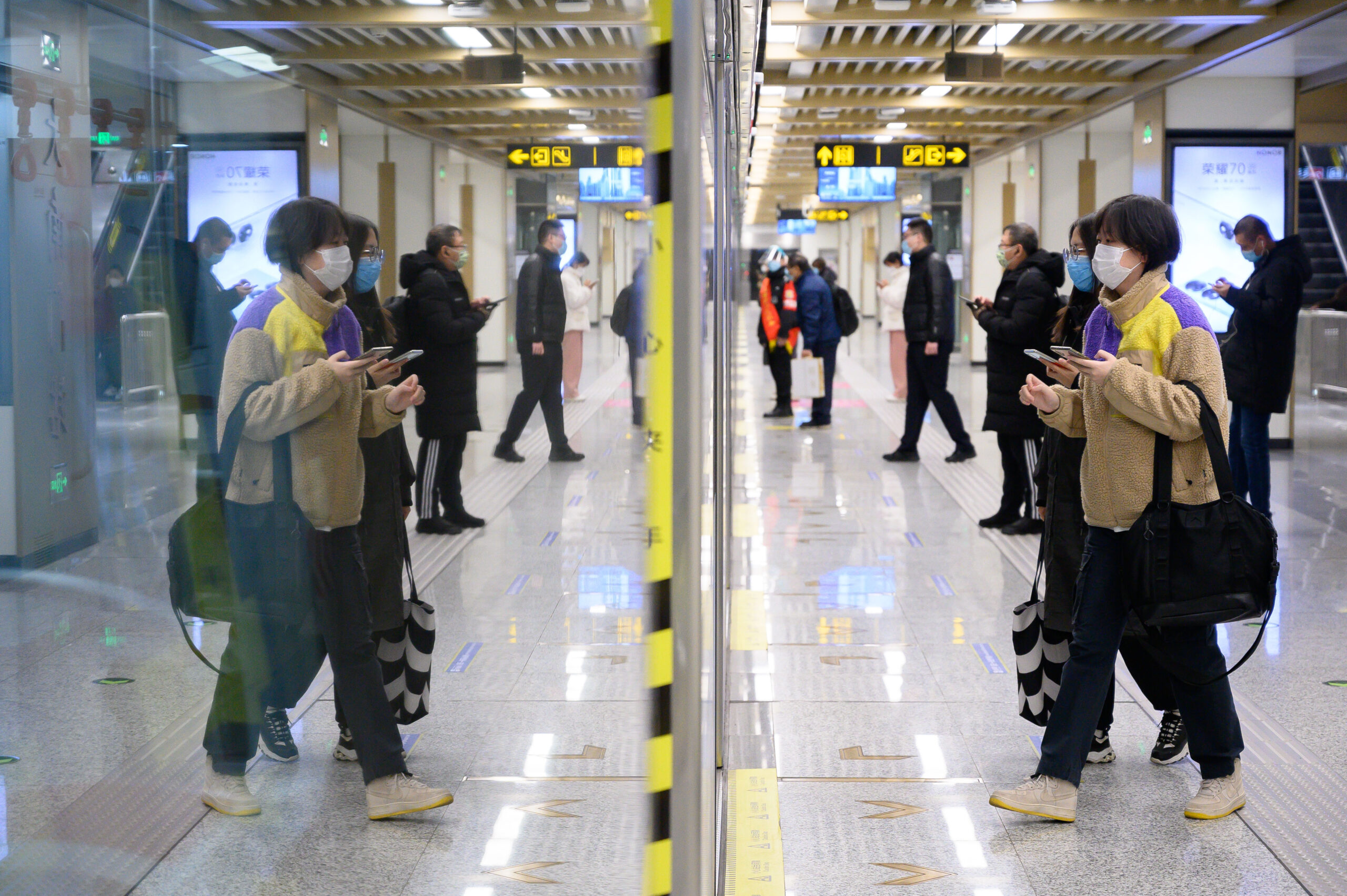 12月5日,山西省太原市,市民在地铁站内乘车出行。当日,按照太原市政府相关防疫工作部署,太原城市轨道交通全线恢复运营。