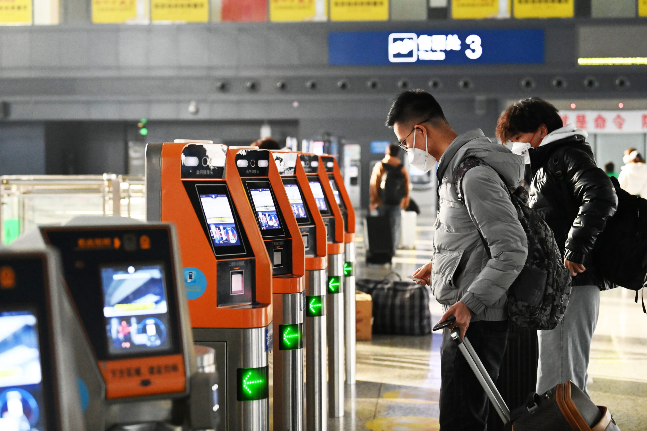 12月9日,甘肃省兰州市兰州西站进站口,乘客只需拿着身份证即可进站。据了解,中国铁路兰州局集团有限公司兰州车站管内兰州站、兰州西站、中川机场站等站,已不再对乘车旅客查验核酸检测阴性证明和健康码。