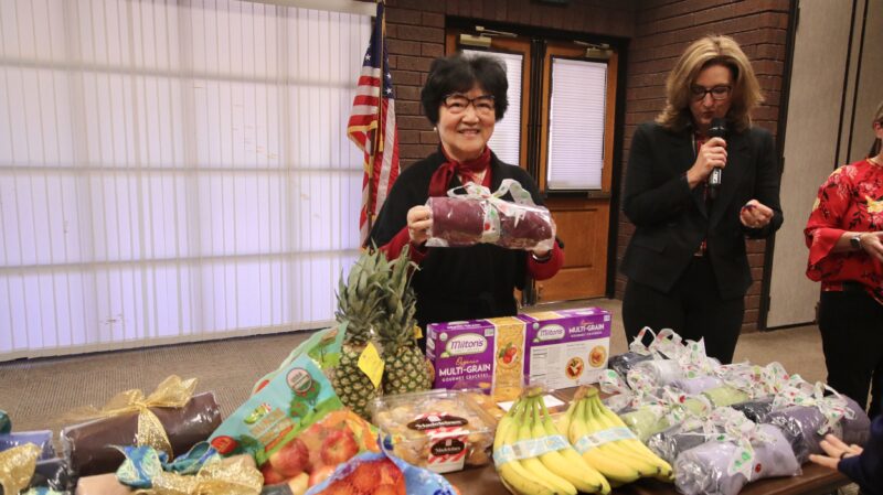 美国上海联谊会理事长周琴向老人们赠送圣诞新年礼