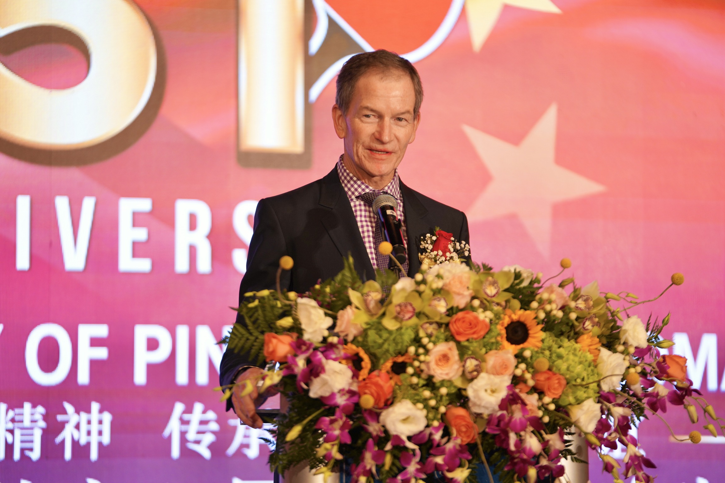 美国奥委会主席 Gene Sykes在致词中表示美中两国的友谊,起源于体育,并贯穿始终。Gene Sykes 期待2028年与大家再相见,重续友谊,继续合作。