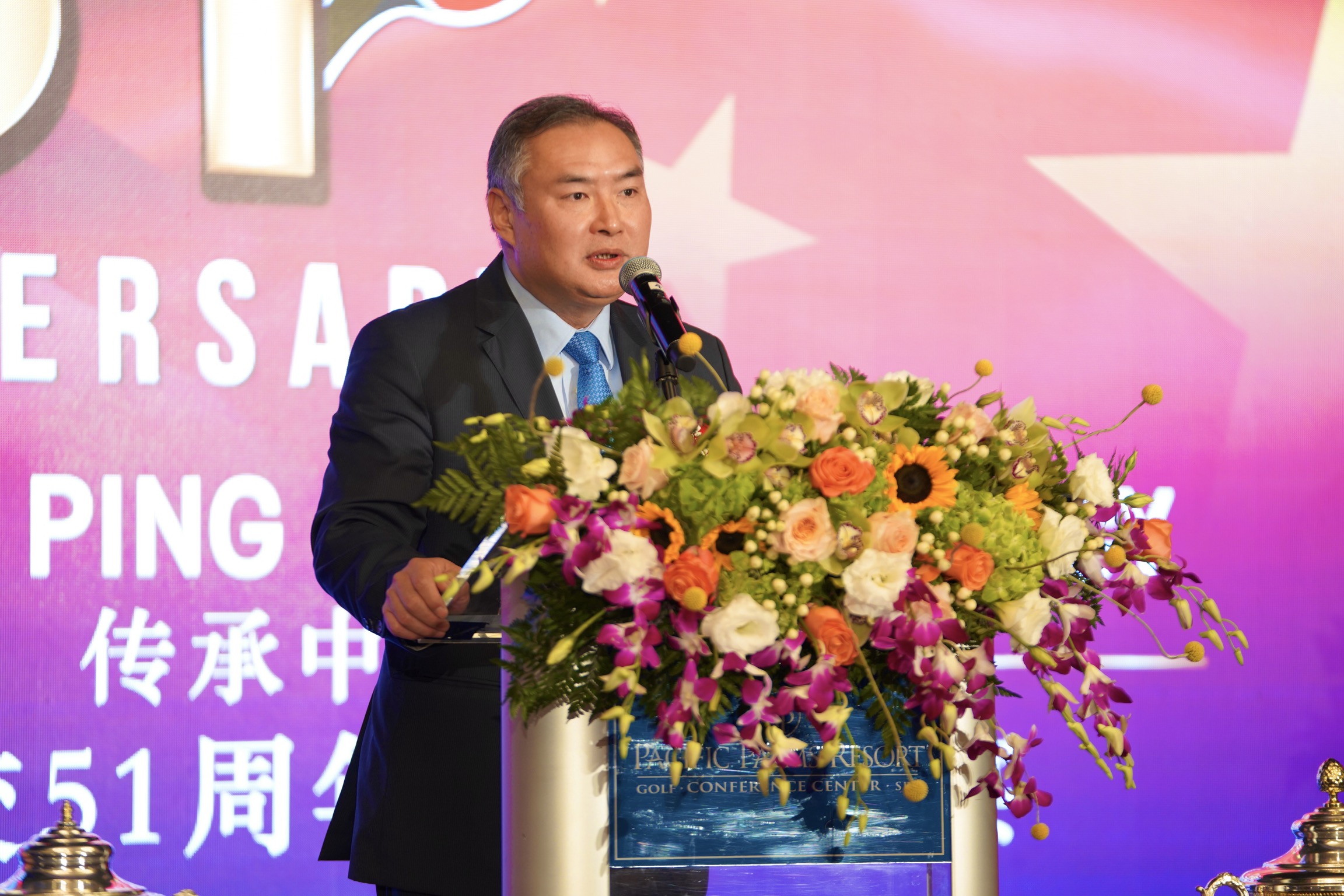 美国南加州华人华侨联合总会会长蔡成华感谢出席今晚纪念中美乒乓外交51周年的各位嘉宾,他表示,小球推动打球,乒乓外交成为中美友好的历史佳话,也为传承中美人民的友谊增添了色彩。联合总会正致力于让小球成为大运动。今年的美国公开赛规模已经超千人。联合总会将持续支持美国乒协的工作,助力乒乓球运动在美国的发展和壮大。在提高运动水平的同时,让乒乓球成为更多人的健康爱好。