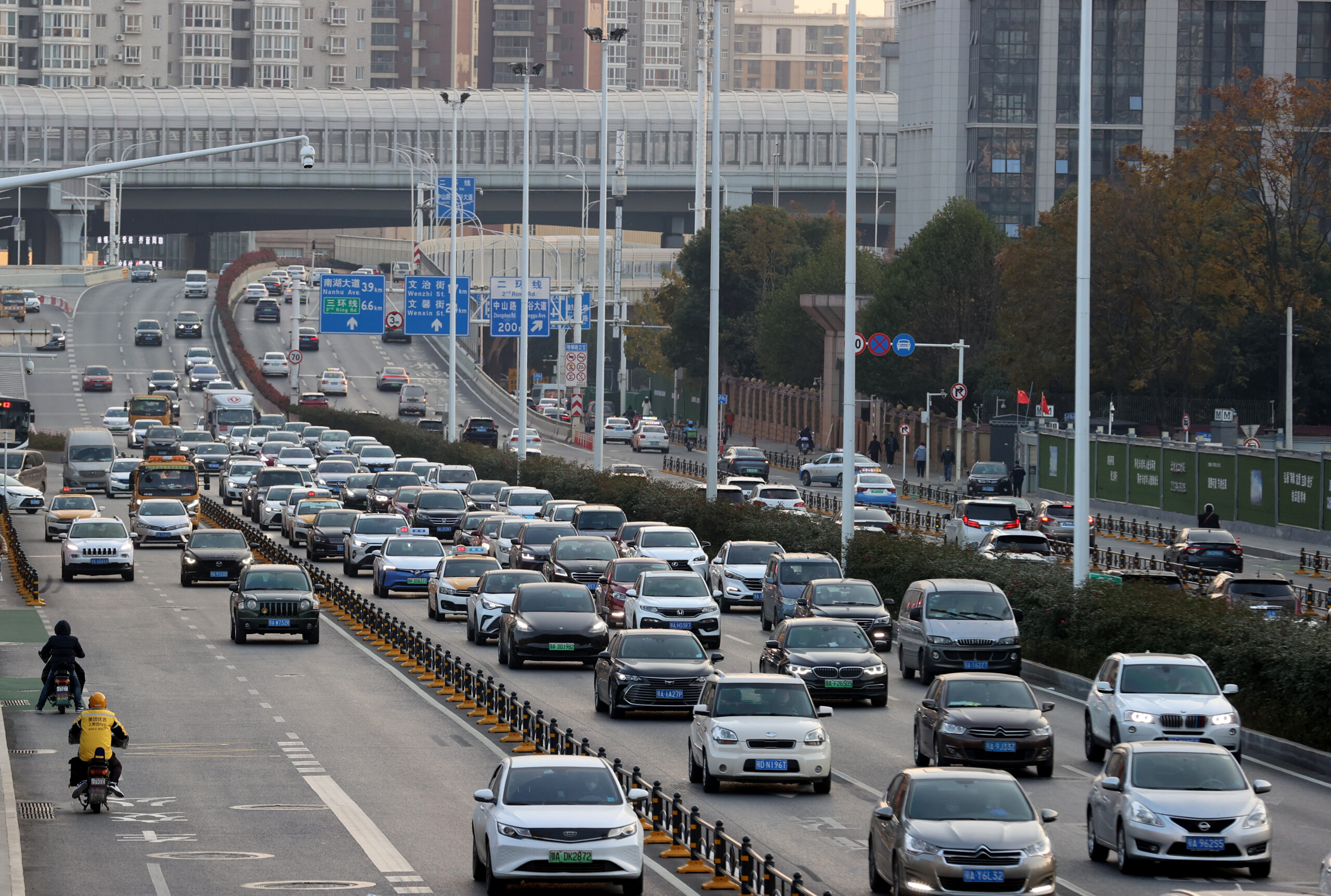 12月23日傍晚,武汉二环线珞狮路段车辆行驶缓慢顺畅。近日,湖北武汉晚高峰时段,路面车流增多。