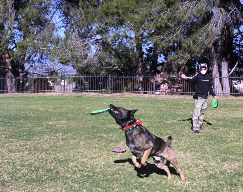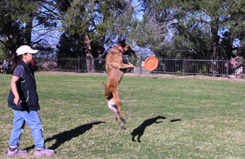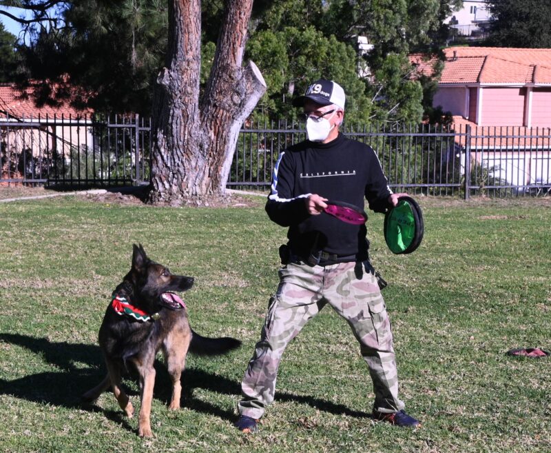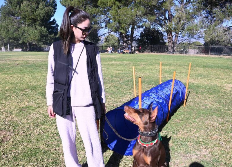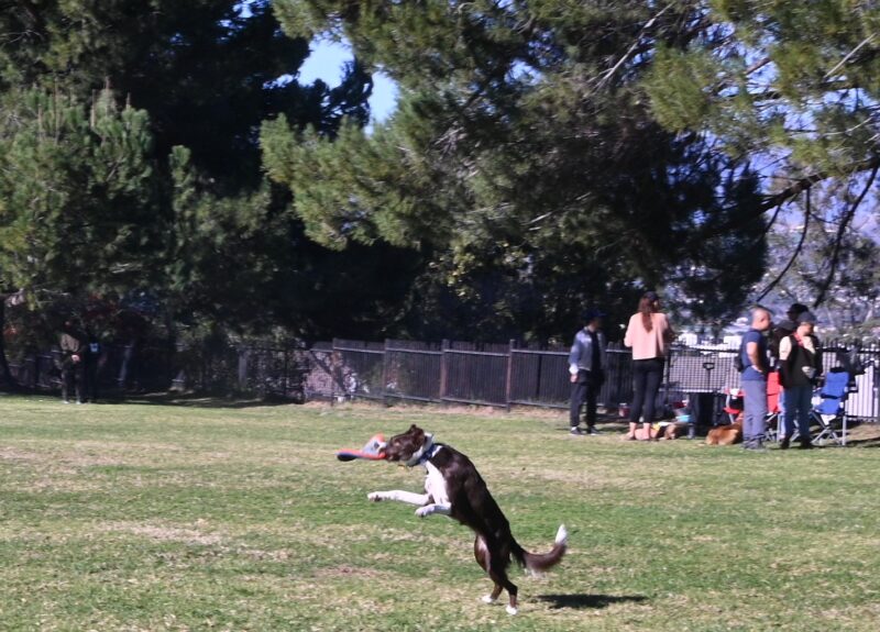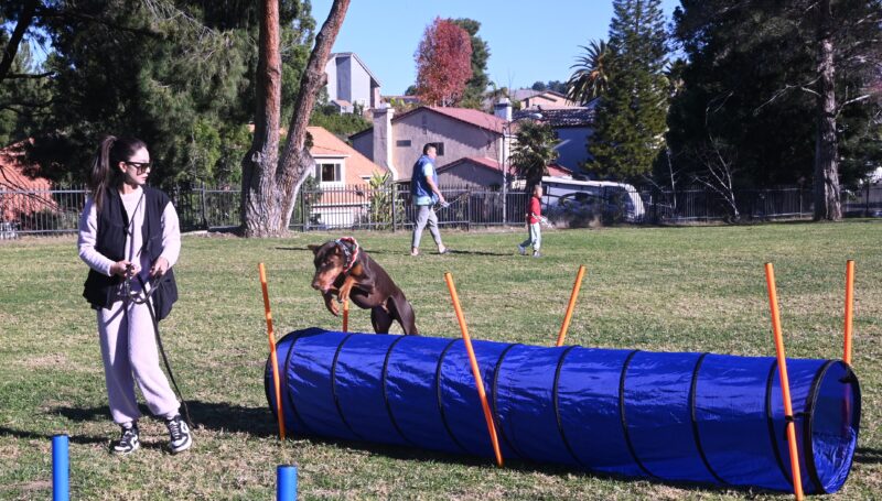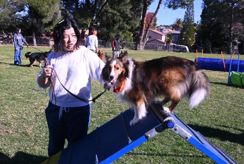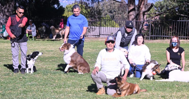 城市新闻12月24日罗兰岗报导,文明养犬,关爱宠物「狗狗圣诞派对」在Blevins Park热闹举行,三十多位养狗人带着自己心爱的狗狗参加,知名爱犬训养师文教练、郭玉强(Ken)教练等在现场作训狗表演,狗狗表演了各种「创新节目」,有追飞碟、跨栏、走独木桥、钻地道、捉迷藏、玩翘翘板等,表演精彩绝伦,受到养狗人热烈欢迎。洛杉矶广西商会会长钱学成、剪接摄影TT大学联盟李嘉欣、梁艺微等参加关爱宠物活动,他们并呼吁更多的狗主人文明养犬,并欢迎参加关爱宠物大型主题娱乐活动,与狗狗结缘,借以纾解疫情中的压力,重振生活与工作。