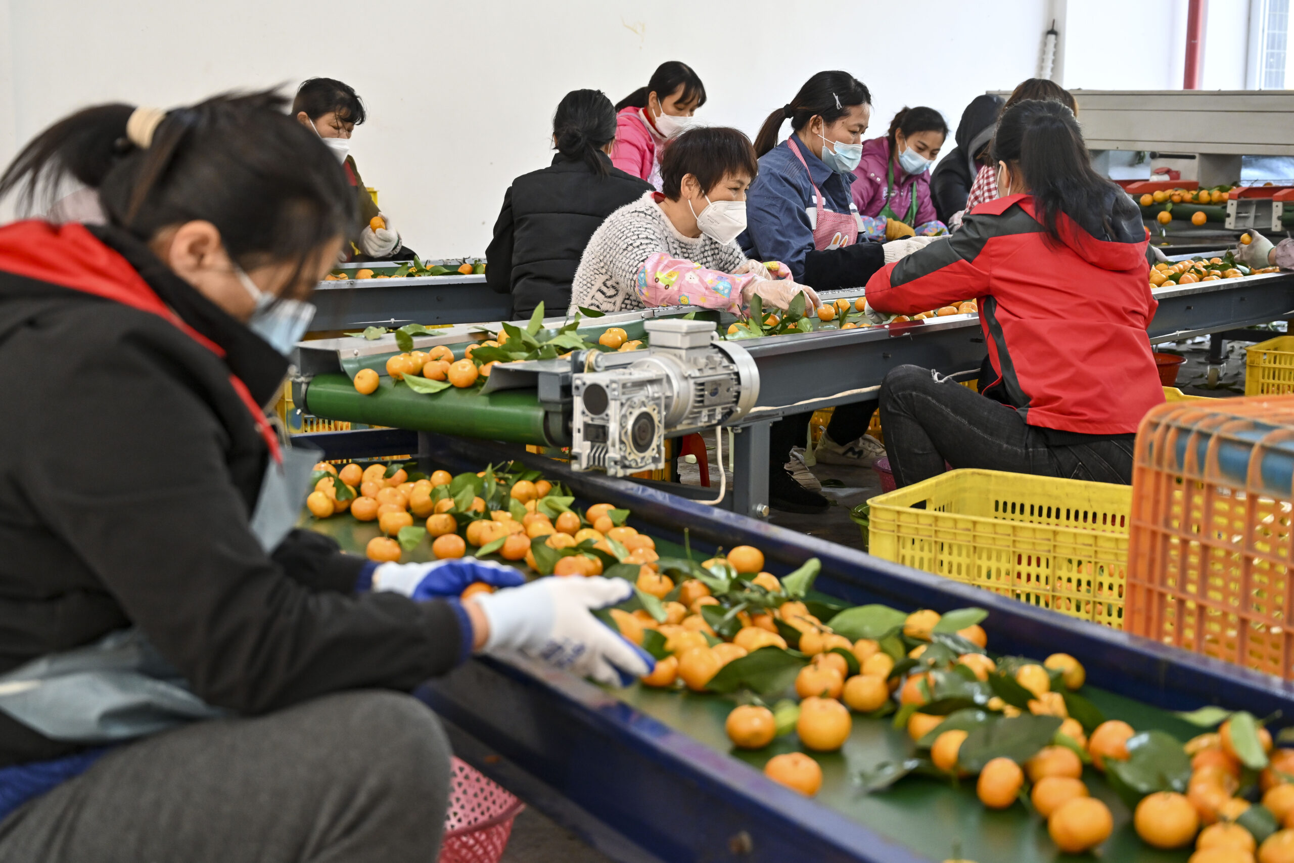 12月28日,广东省肇庆市,粤港澳大湾区农产品交易中心内的工作人员在生产线上挑选橘子。当日,粤港澳大湾区肇庆(怀集)绿色农副产品集散基地农产品交易中心正式开业。 未经允许不得转载:城市新闻网icitynews » 粤港澳大湾区农产品交易中心正式开业