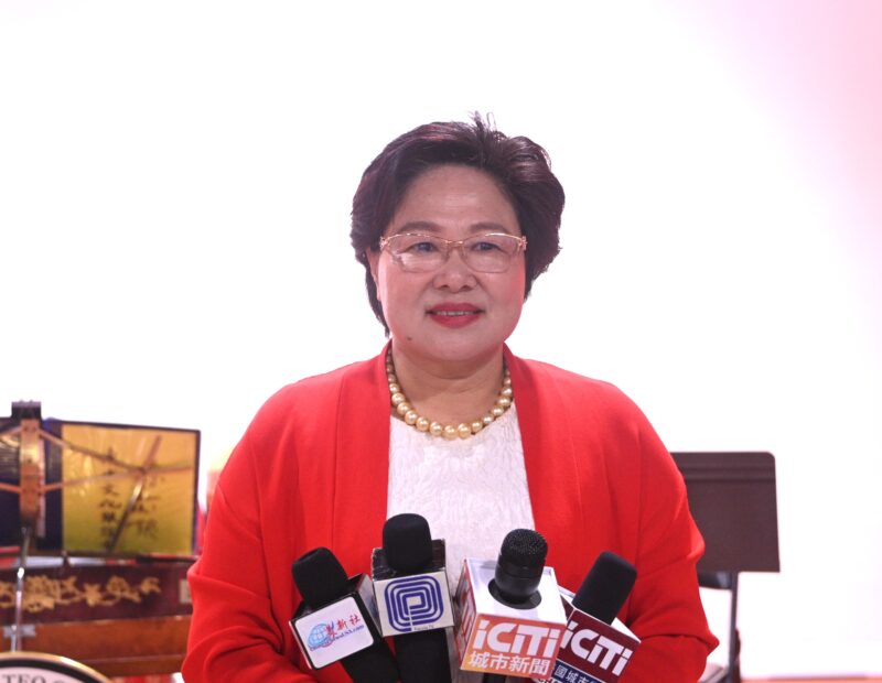 美国南加州华人社团大联盟主席林淦花接受各大媒體記者訪問