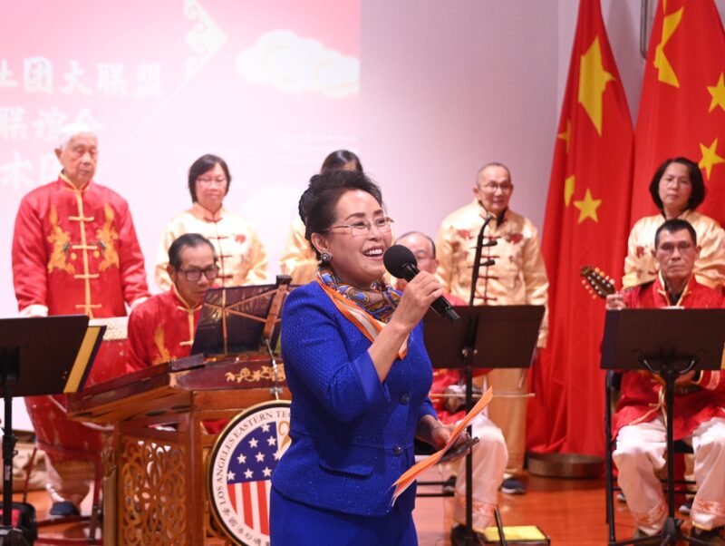 美国南加州华人社团大联盟主席林淦花致词表示,「瑞虎辞旧,玉兔迎春」,由我们美国南加州华人社团大联盟、美国东方文化联谊会、加州爱乐艺术团联袂举办「迎新年庆元旦」文艺演出联欢会,感谢大联盟干部,东方大锣鼓队,加州爱乐艺术团团长徐佰生领导的全体艺术家,在百忙之中排练文艺演出,大家辛勤的付出,使活动取得圆满成功。我仅代表大联盟感谢每一位嘉宾、侨团领袖一起共襄盛举。新年伊始,扬帆起航,让我们驶向平安、健康、快乐、幸福的港湾。2023年一切美好如约而至,祝各位领导、各社团领袖、亲朋好友们,2023新年快乐,身体健康,心想事成,万事如意,兔年吉祥。