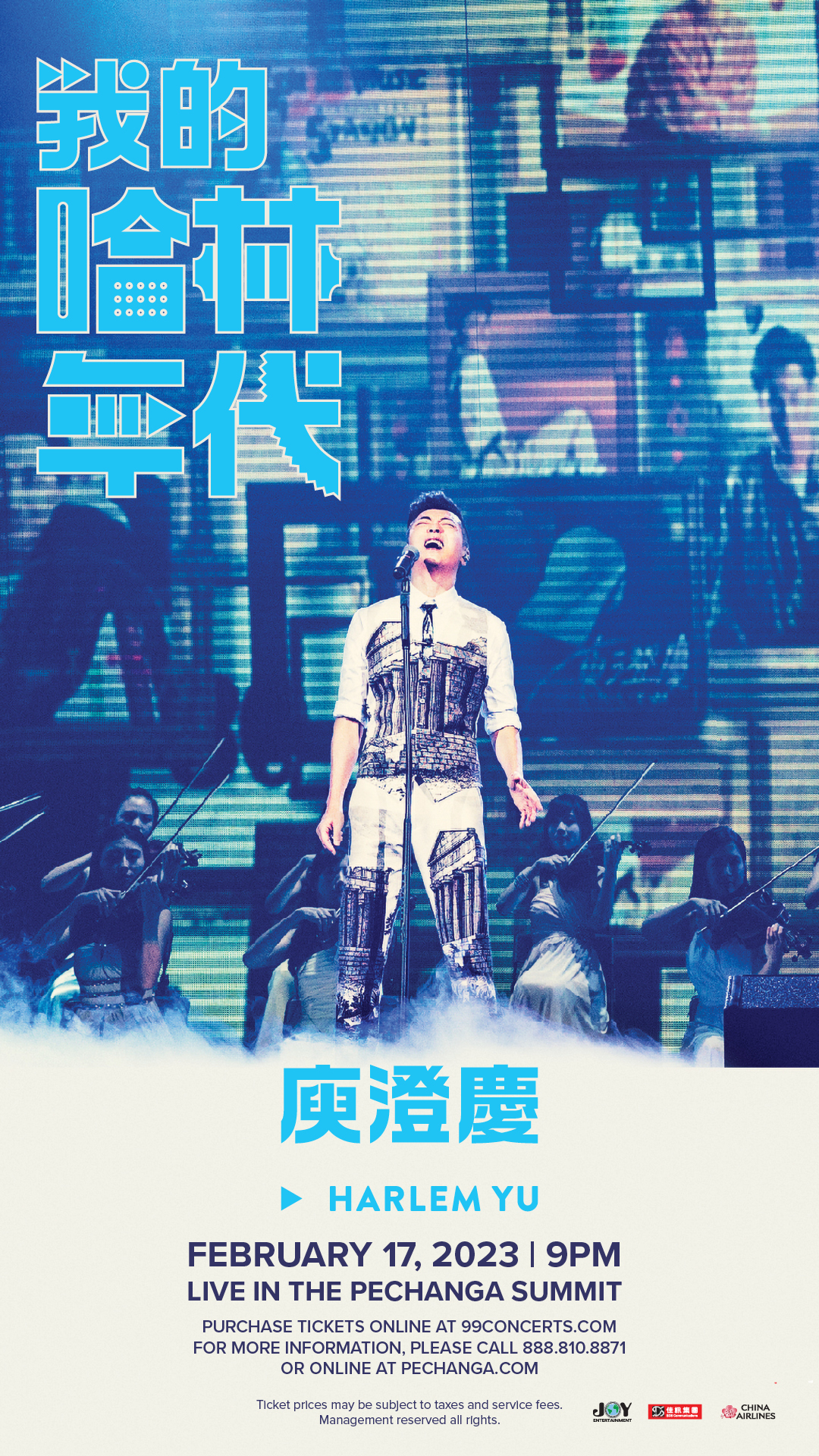 「大莊家賭場度假村」誠邀您的蒞臨, 欣賞《我的哈林年代演唱會》。票價分為$68、$98、$128、$188,欲免向隅,訂票從速。請火速訂購演唱會門票。中文熱線: (626) 632.1994。查詢有關詳情可致電(888) 810-8871或上網至www.Pechanga.com.