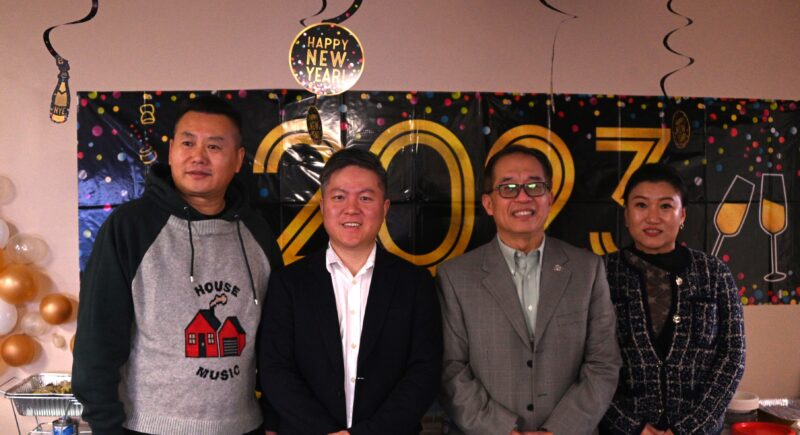 左起:老刘烤鱼老板刘涛、Jack Hwang、伍立伦市长、Betty李