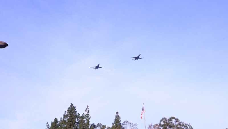 两架美国军机呼啸而过,在老警摩托车队队引领下,第134届美国帕萨迪纳玫瑰花车游行花车沿着帕萨迪纳市5.5英里的路线行驶。「玫瑰花车游行」路线将从格林街(Green Street)和奥兰治格罗夫(Orange Grove)大道的拐角处开始,沿着奥兰治格罗夫大道向北行驶,再继续沿着科罗拉多(Colorado)大道向东行驶,沿着塞拉马德雷(Sierra Madre)大道向北行驶,抵达胜利公园。