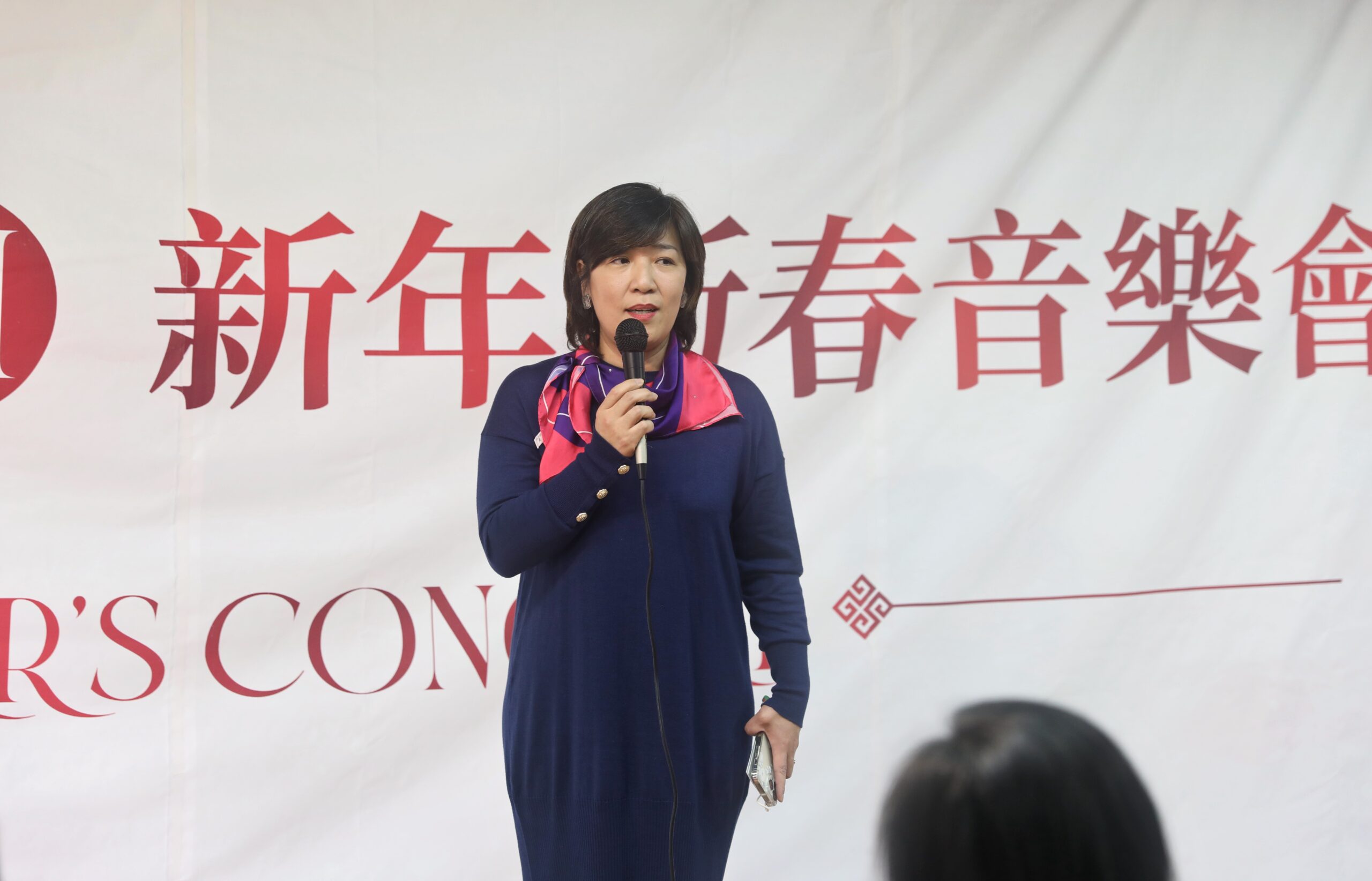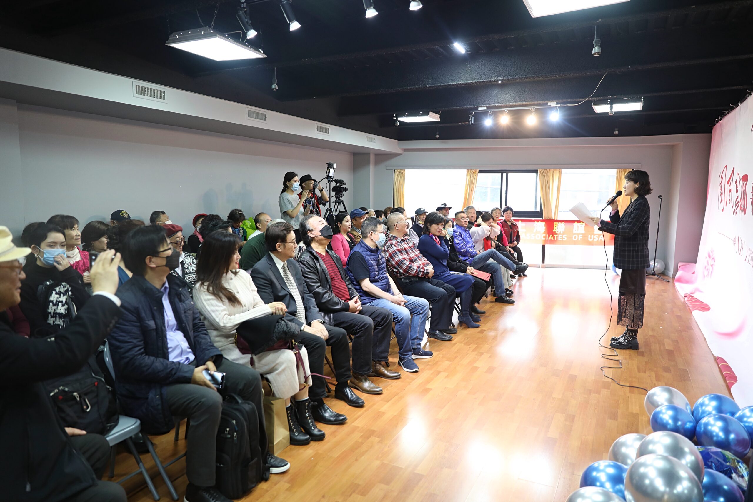 主办方:美国梅拉诺文化演艺执行总裁,海外越剧联盟主席,海外王派传承人邬素斐小姐(中)上台致辞。