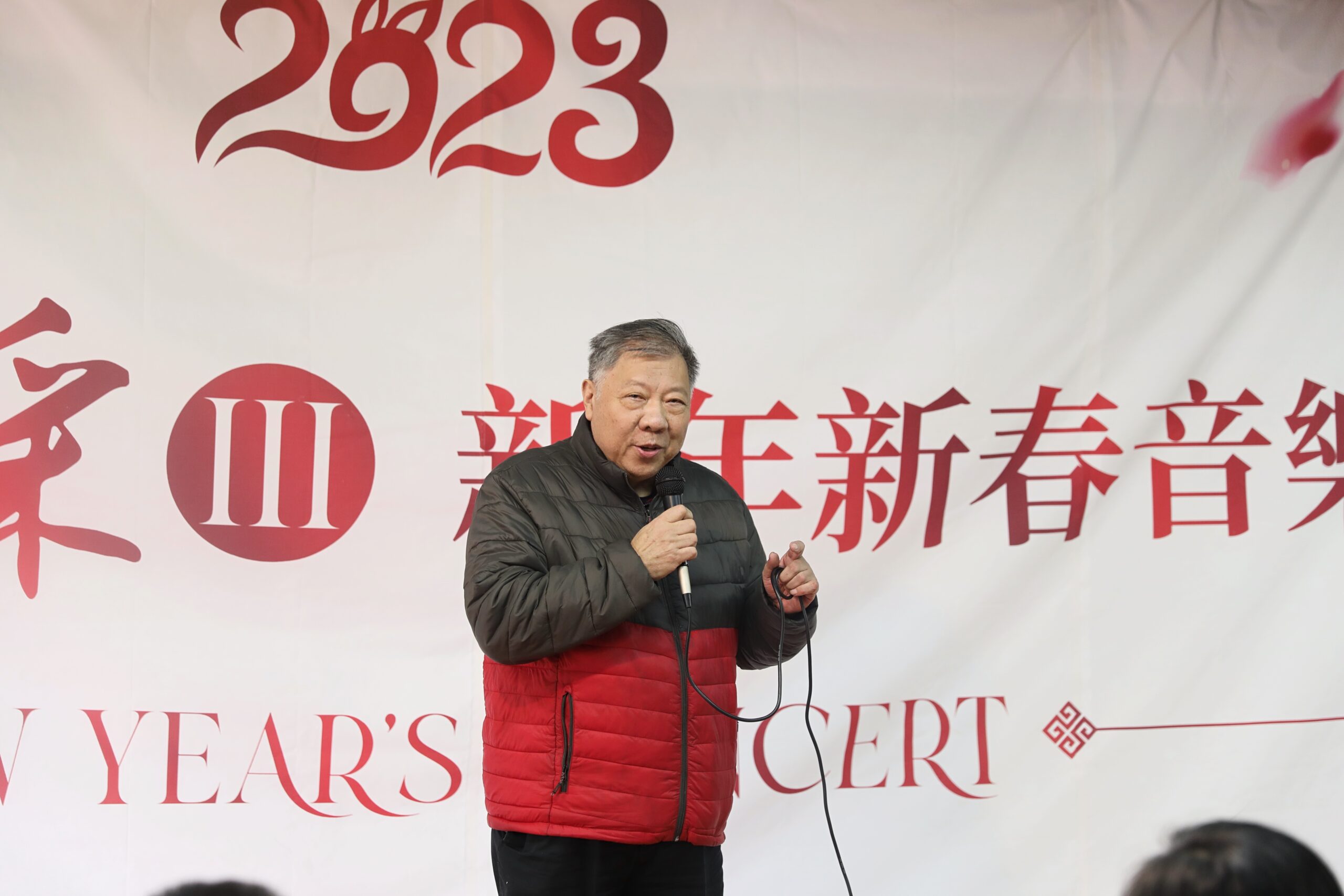 联合主办方代表,美国金鹰民族乐团团长乐德明先生上台致辞。