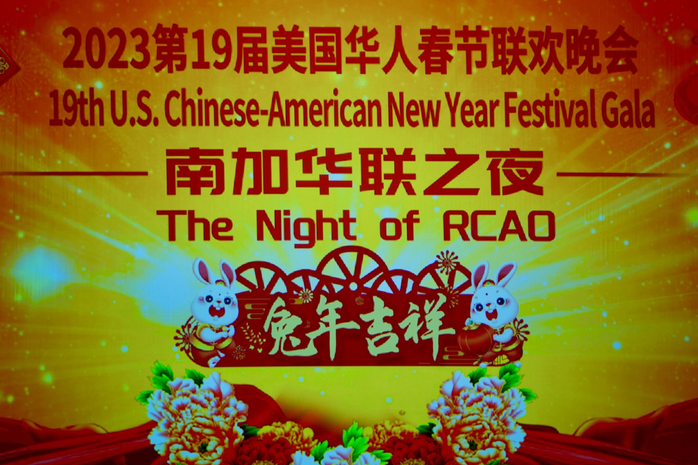 本场晚会主题为喜迎中国兔年,晚会冠名为“南加华联之夜”。晚会开场再现了2022年11月27日南加华联参加第90届好莱坞圣诞大游行的场景,南加华联横幅队、礼宾车、大熊猫、武术表演、美中文化协会腰鼓响扇、北京联谊会旗袍队再次登场表演,再现当时的盛况。