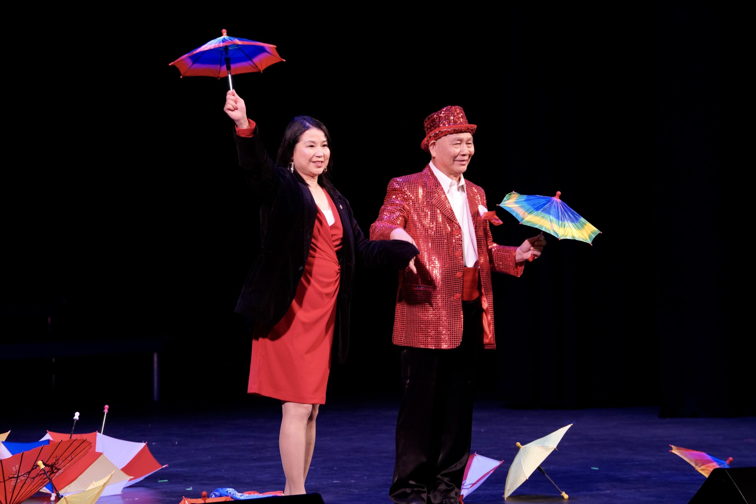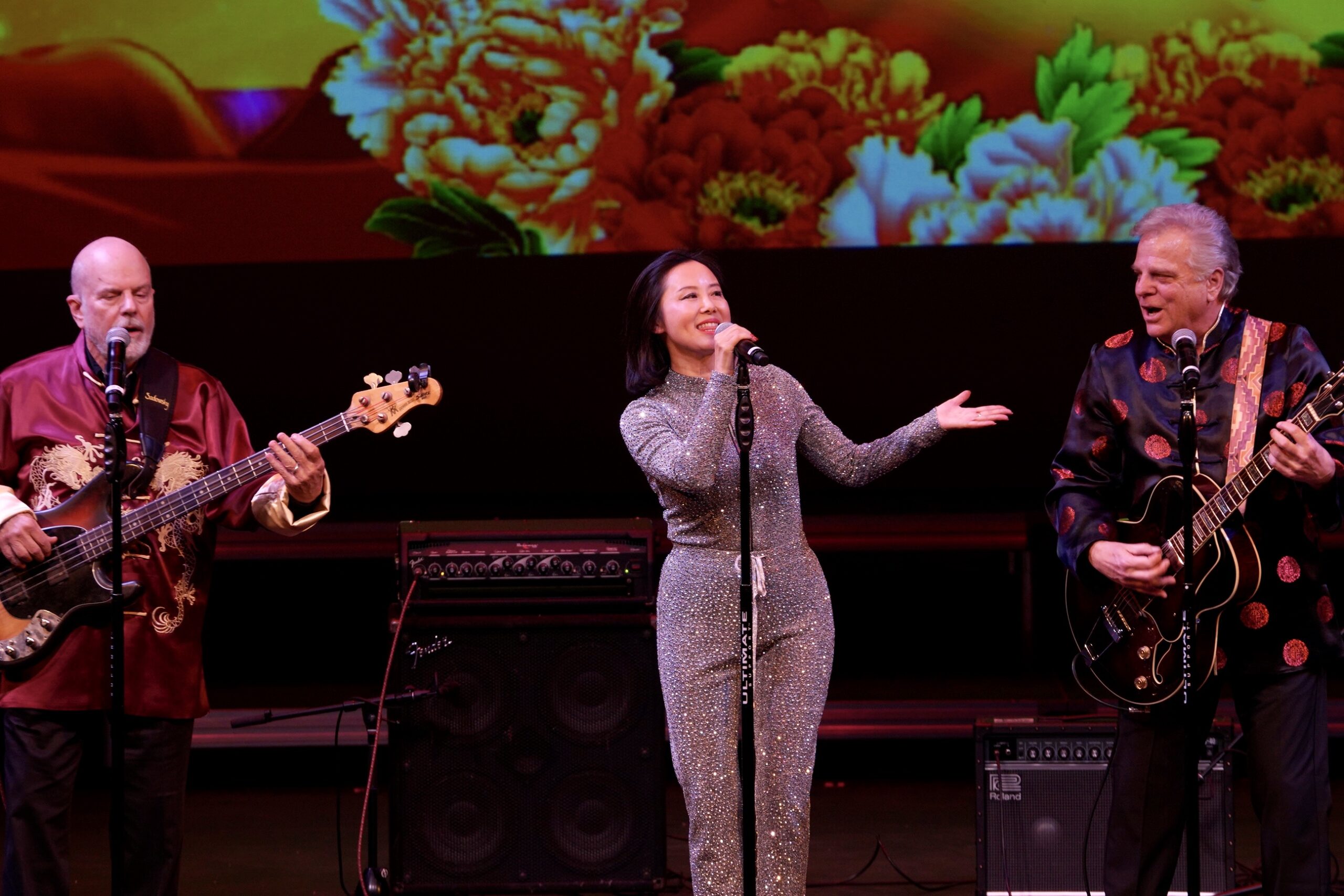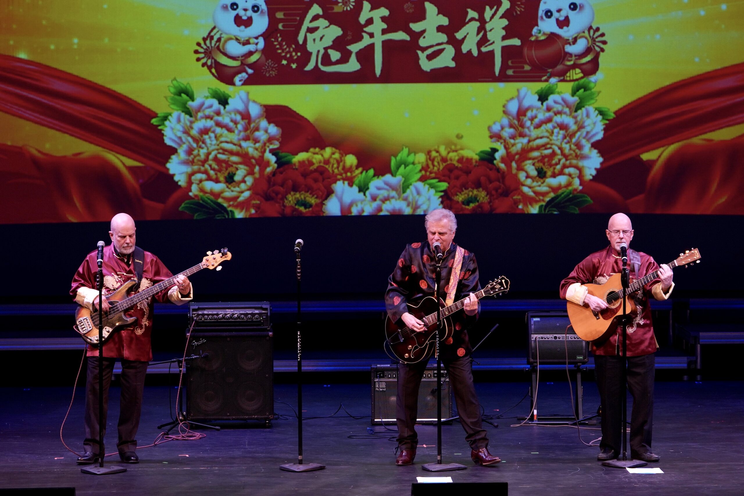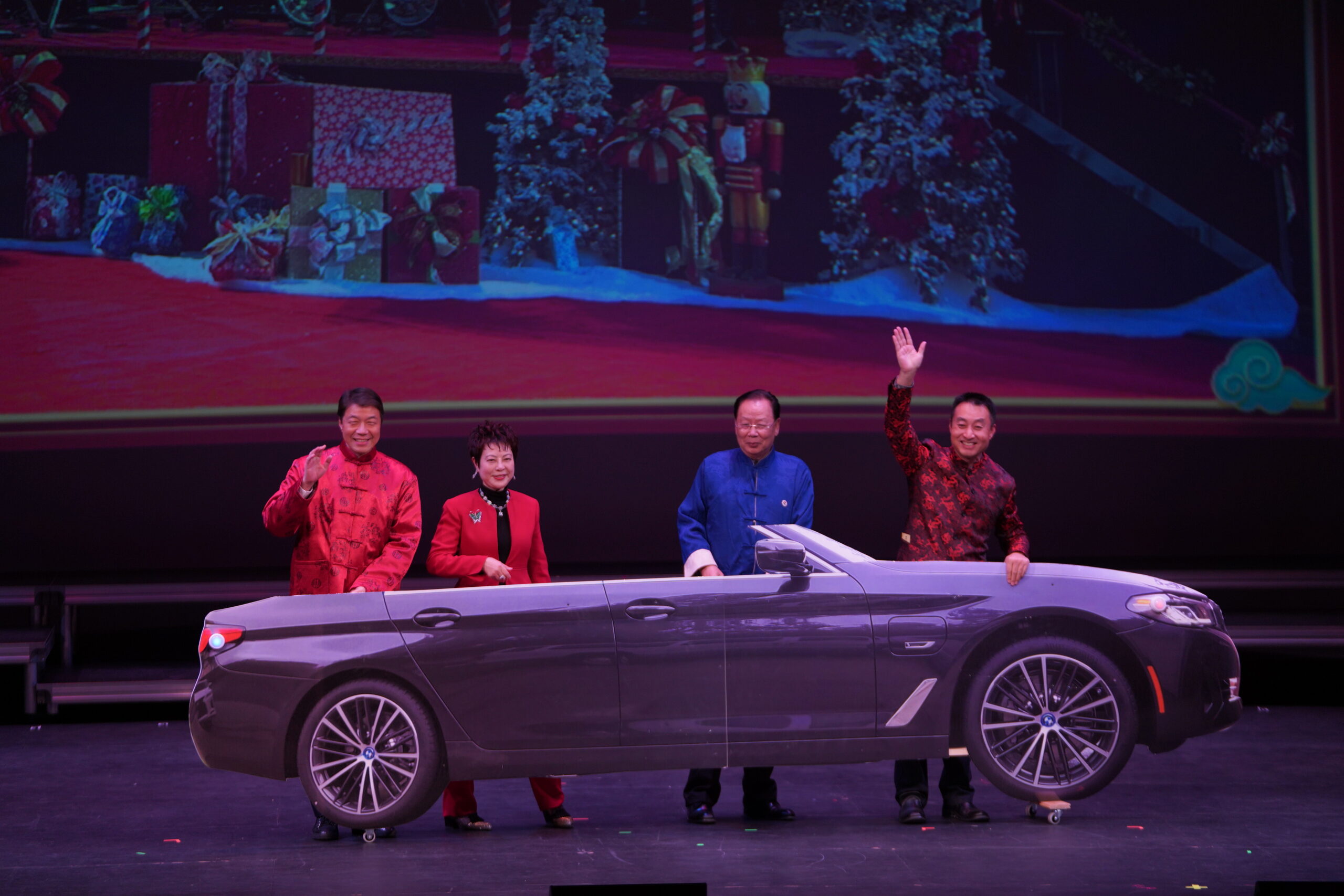 晚会主席与各位嘉宾在晚会上登台以各种形式表现喜迎新春并向在场的观众拜年。晚会充分展现南加华联和嘉宾们在农历新年期间对华人华侨、对家人和朋友的美好祝福,共同祝愿大家兔年新春快乐。