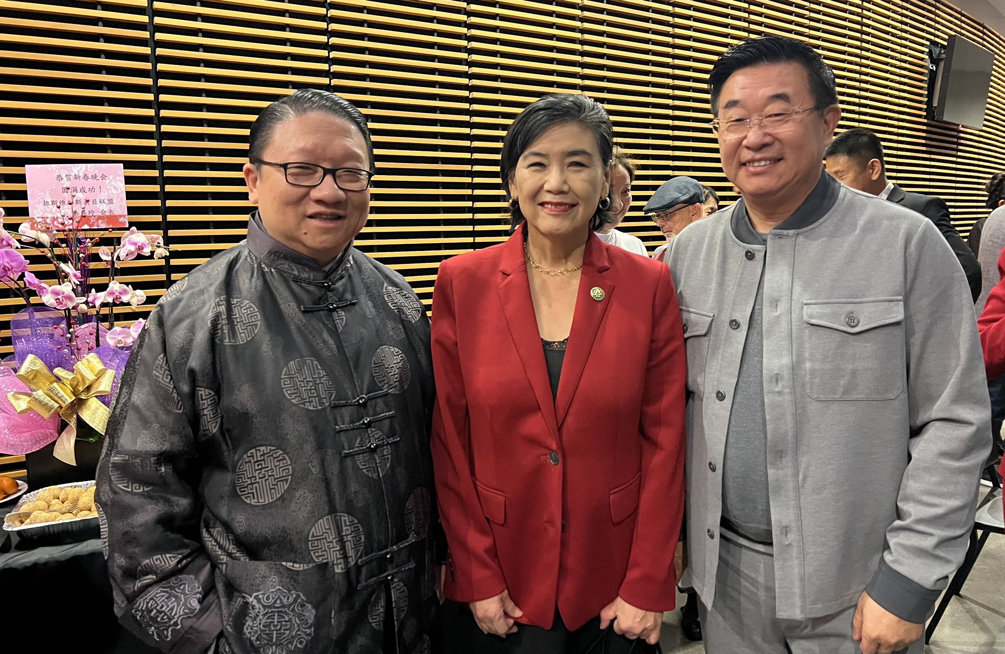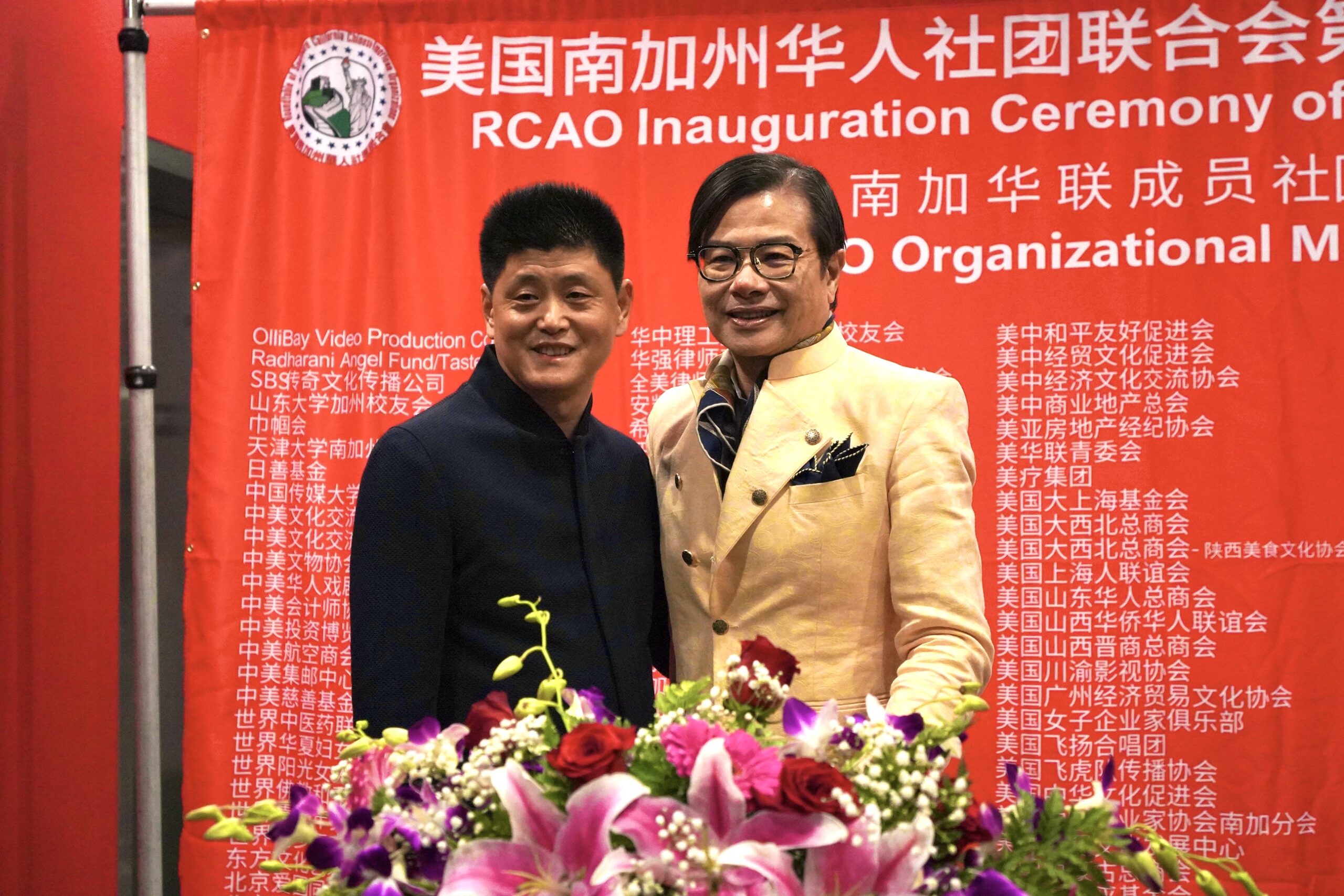 美国洛杉矶华人华侨联谊会主席关健荣、创会主席马树荣、美国南加州华人华侨联合总会会长蔡成华、美国南加州华人联合总会会长邵闻、罗省中华总商会主席庄佩源、美国江苏经贸文化联合会会长徐晓峰、美国华人妇女联合会会长张娴等侨界代表也到场祝贺。