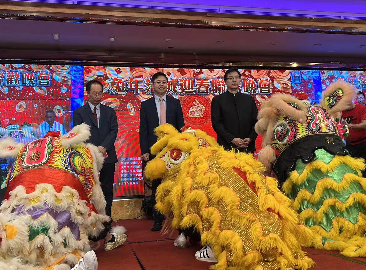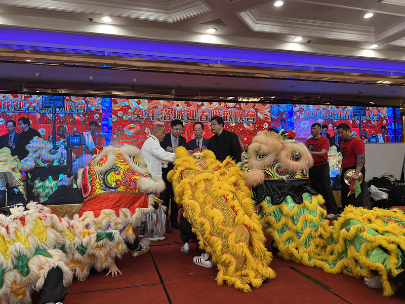 李春林副总领事、关健荣和梁建锋为醒狮“点睛”,刘家勇师傅舞狮团舞狮表演精彩绝伦,一片欢歌笑语、「兔年洛城迎春联欢晚会」旨在凝聚乡情、宏扬中华文化,全美华人协会南加州分会、大洛杉矶地区中国统一促进会、罗省萃胜工商会、美国洛杉矶华人华侨联谊会、美国亚洲人商会联合洛杉矶星岛日报、星岛中文电台、星岛电视共同举办,支持单位是中国驻洛杉矶总领事馆。