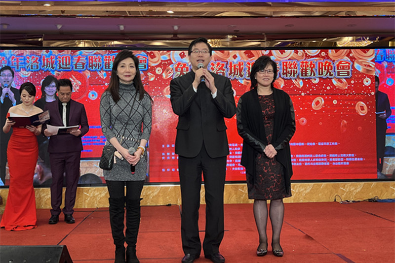 城市新闻1月14日柔似蜜市报导,南北加州共唱一台戏「兔年洛城迎春联欢晚会」在888海珍大酒楼盛大登场,中国驻洛杉矶总领事馆副总领事李春林、侨务领事王琦、安明栓、亚凯迪亚市市议员高卿、钻石吧市市议员邓嘉猷、亚凯迪亚市前市长戴守真;主办单位负责人和南加州侨领关健荣、欧阳韬、马树荣、刘健峰、何畅源、梁权、颜君玲、关中枋、李锦生、蔡成华、邵闻、陈慧碧、庄佩源、郭颂、林淦花、张勇、张娴、曹琳、 孙英丽、周德昭、魏海鹰、张铁流、林光、江风年、林玛丽、巫锦辉、徐佰生、于泽伟、曾小梅、林方、孙淑婷、张鸣、李金生、胡卓球、杨辉、王素雯、王智、楊麗楨等500多人出席,共享盛举。星岛日报社美西版社长兼总编辑梁建锋特从旧金山赶来出席,与民众一起喜迎兔年的到来。