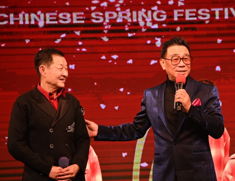 春晚总策划、美国明星文化演艺集团董事长李刚致词,左:马名伟总导演