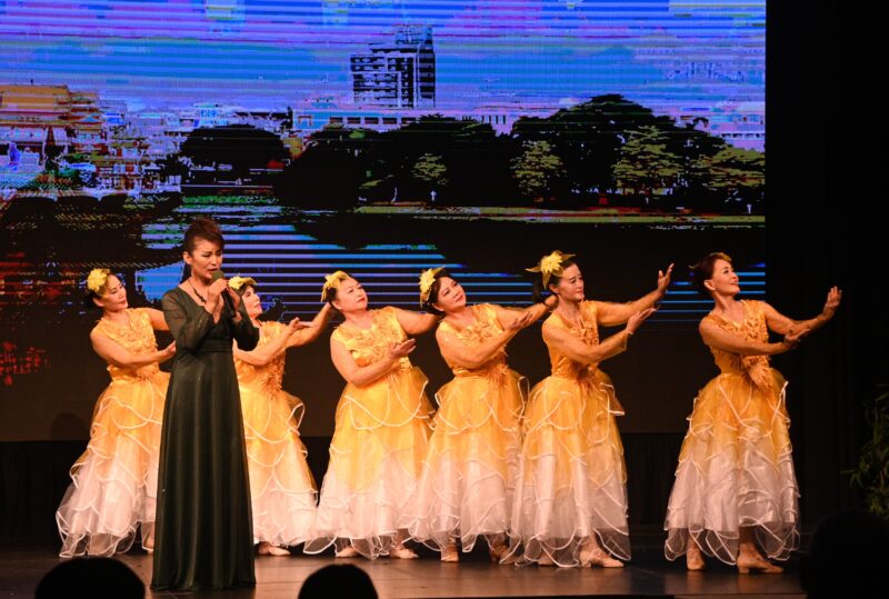 好莱坞演员、作家、双语主持人彭南林男声独唱「可可托海的牧羊人」,魅力歌舞伴舞,把舞台演绎得满堂彩。冯特佳表演「 Fly Me to the Moon」,于点艺术中心伴舞,收获满满。「拉丁激情恰恰」,拉丁风情舞蹈队Lanny、Jennifer、Lydia、Fiona、Mei主演,掌声不断。王昱涵童声独唱「隐形的翅膀」,姜珊老师舞团伴舞,小歌手唱响大舞台。舞星艺术舞蹈表演队送上「肚皮团体舞」,给人们带来异国风情的艺术享受。蔡米雪的女声独唱「每个人心中都有一片草原」,公主组Henrietta Ham等伴舞,吸引不少粉丝。