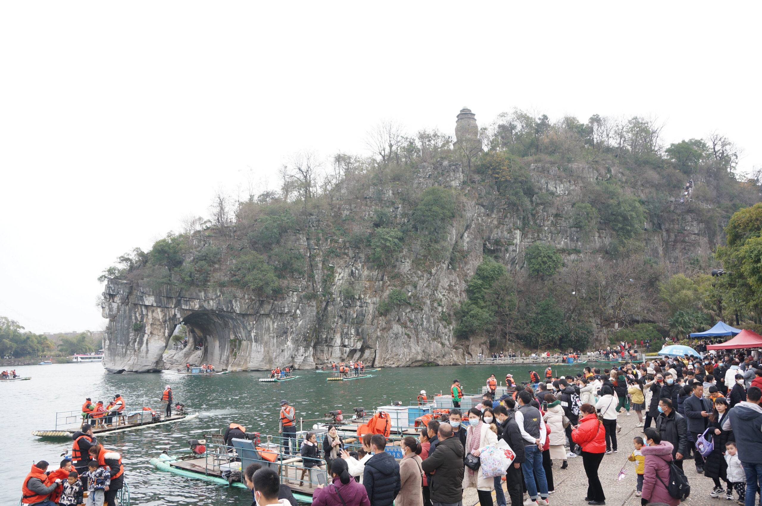 1月25日,广西桂林象鼻山吸引游人。当天是农历大年初四,很多游客到桂林象鼻山打卡游玩。