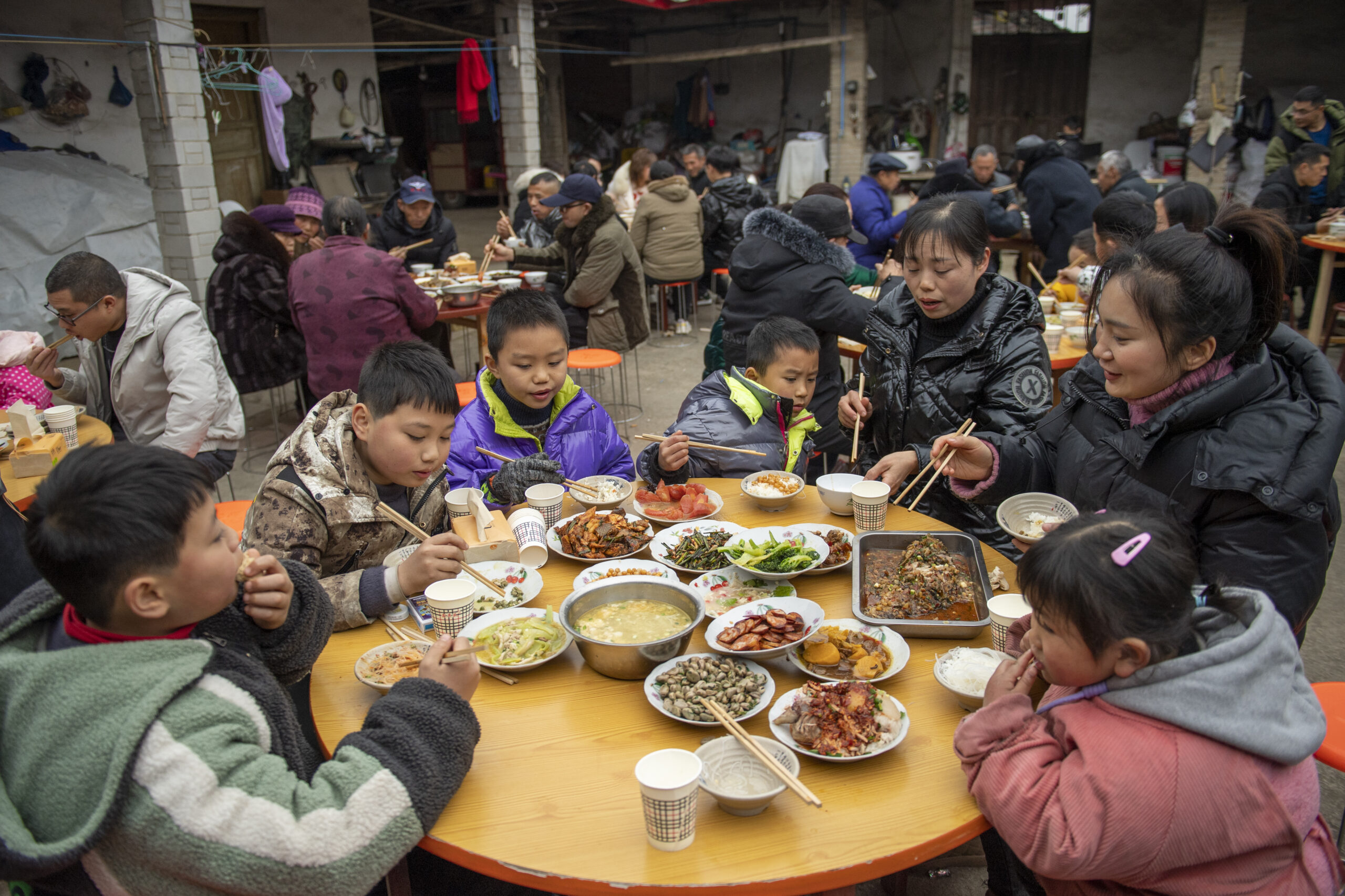 1月25日,农历正月初四,四川眉山东坡区万胜镇万新村2组刘中学家的新年“拜年会”启幕,亲朋欢聚一堂,共话家常共贺新年,热热闹闹过大年。图为新年“拜年会”上的孩子们。
