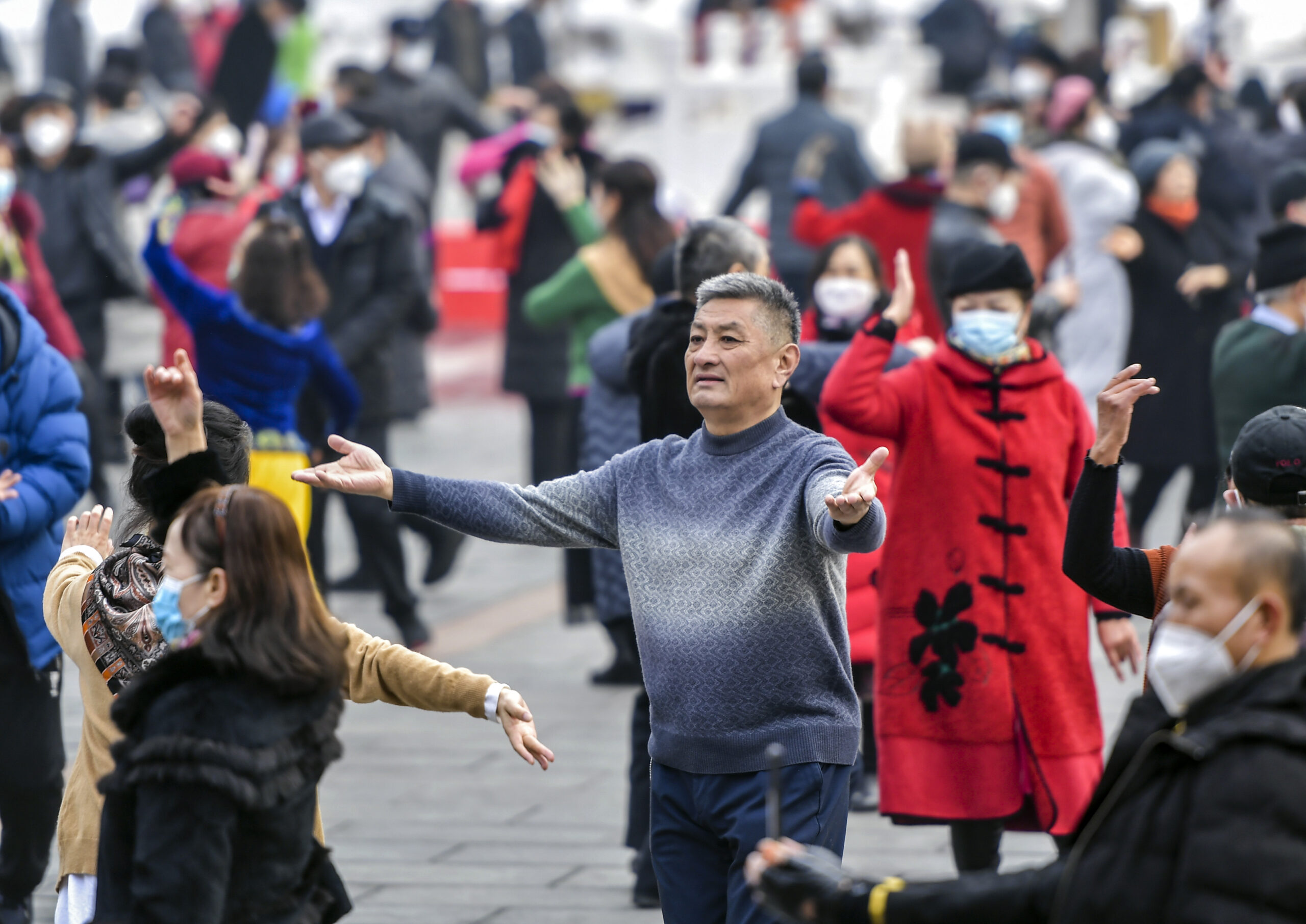 2月8日,新疆乌鲁木齐市人民公园朝阳阁前的小广场上,各族民众聚集在此跳起欢快的麦西来甫舞蹈。据了解,该麦西来甫舞会由市民自发形成,每天下午都会吸引众多市民前往参与。 未经允许不得转载:城市新闻网icitynews » 乌鲁木齐:公园里的麦西来甫舞会