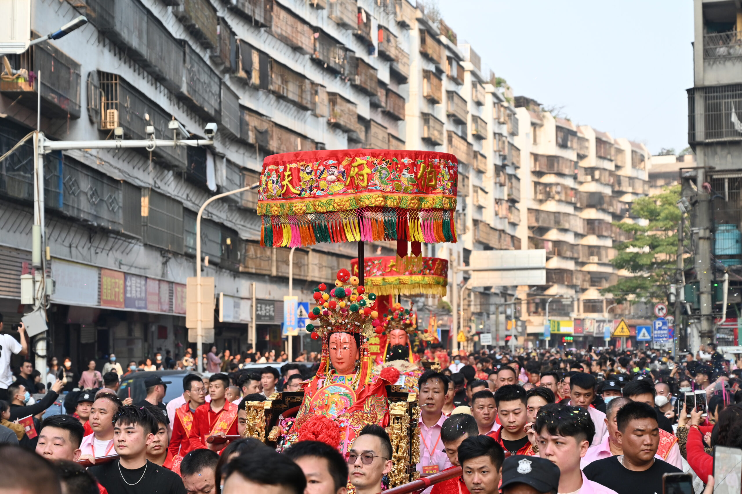 2月13日,正月二十三,广东省揭阳市举行“城隍庙会”,现场英歌舞、舞狮、舞龙、镖旗锣鼓等民俗表演轮番上演,吸引市民游客驻足观看。图为“城隍庙会”巡游队伍吸引参观者。 未经允许不得转载:城市新闻网icitynews » 广东揭阳举行“城隍庙会”