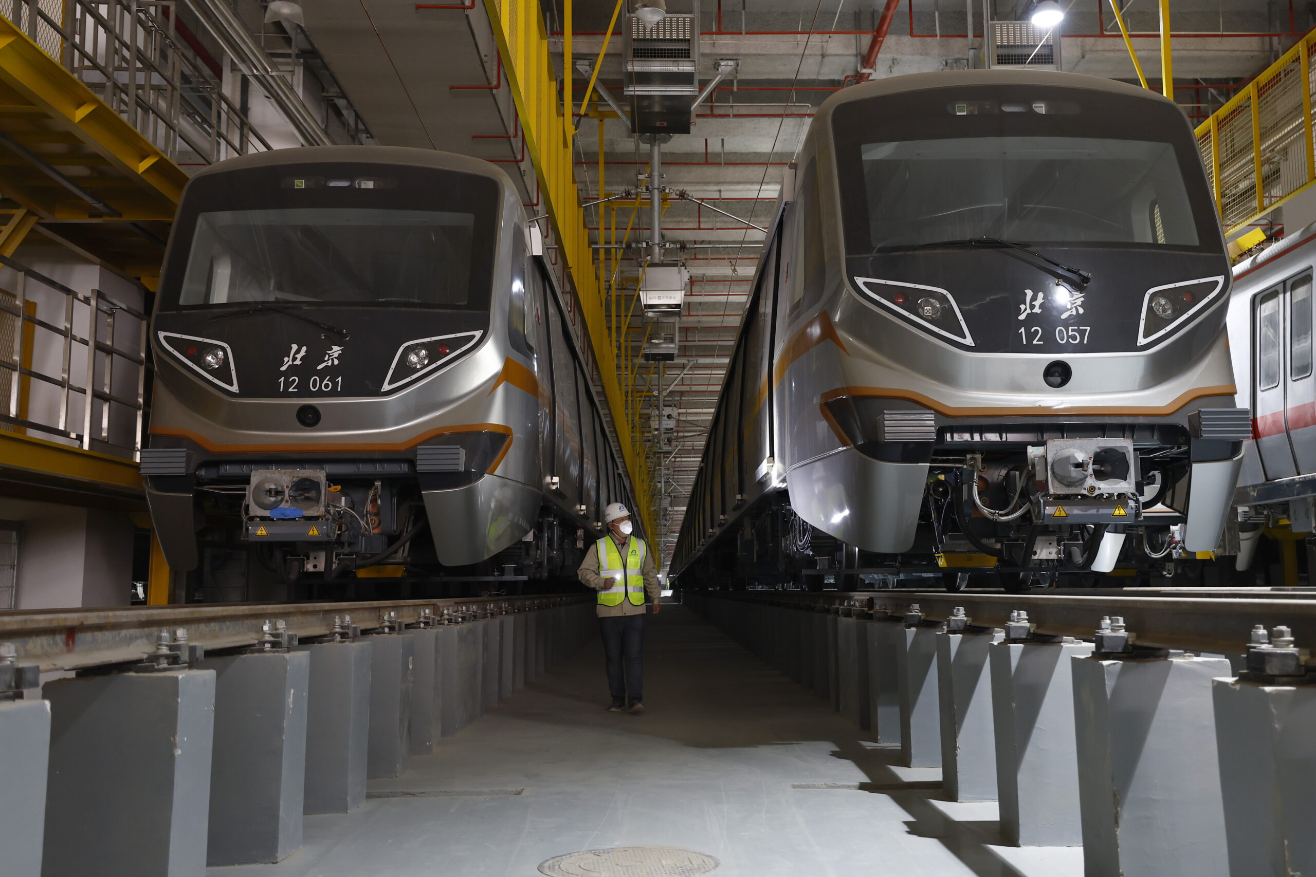 2月20日,工作人员在北京地铁12号线东坝车辆段巡查列车。北京地铁12号线正线全长为29.6km,西起西四环四季青桥南,东至东坝北街,途经海淀、西城、东城、朝阳四个行政区,全线共设21座车站,其中换乘站15座,全线建成通车后,将与4号线、5号线、8号线等12条线路实现换乘。当前12号线车辆陆续进场,工程正在加速推进。