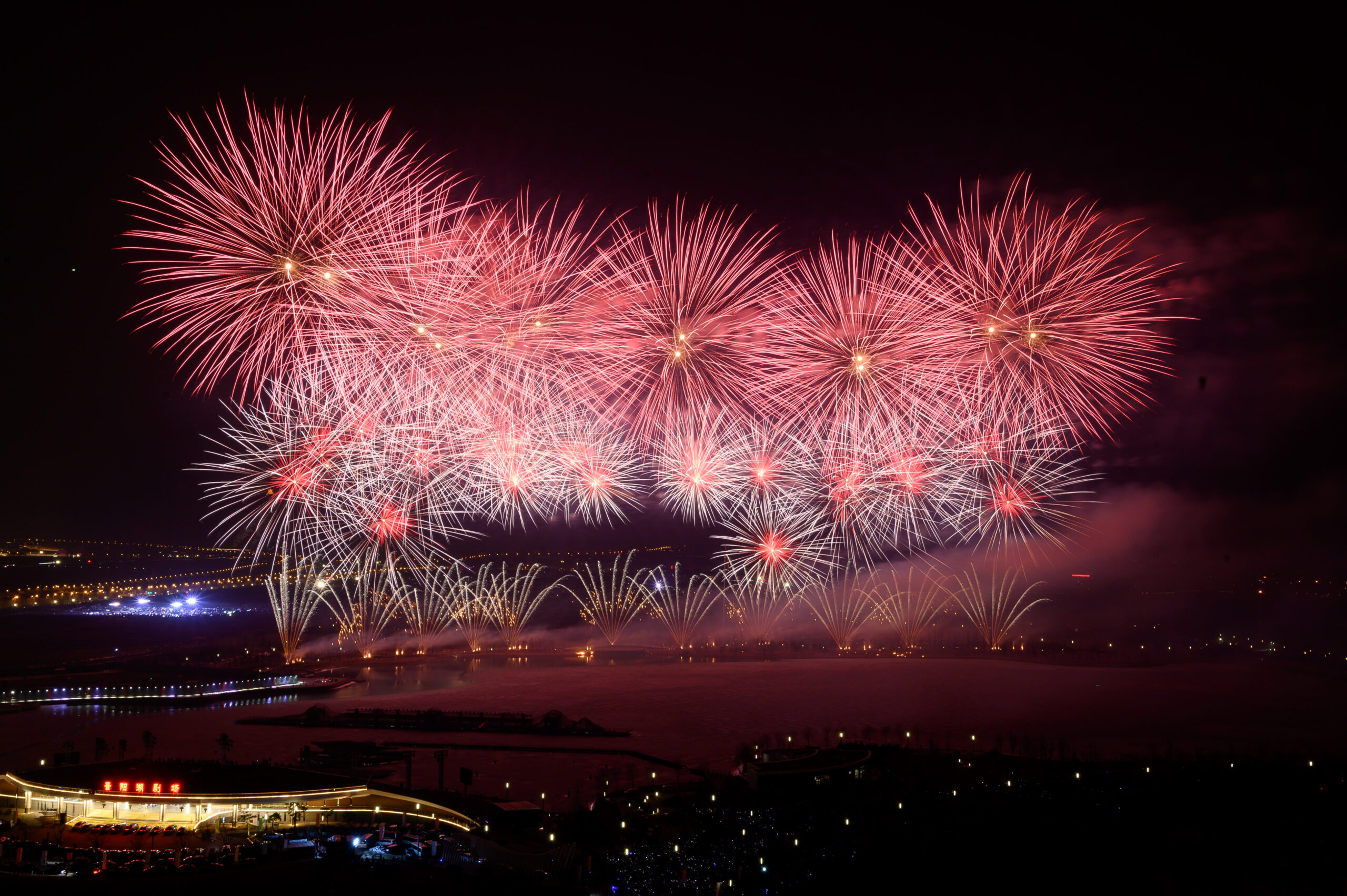 2月21日晚,山西省太原市,庆祝“二月二龙抬头”大型烟花秀在晋阳湖上演。