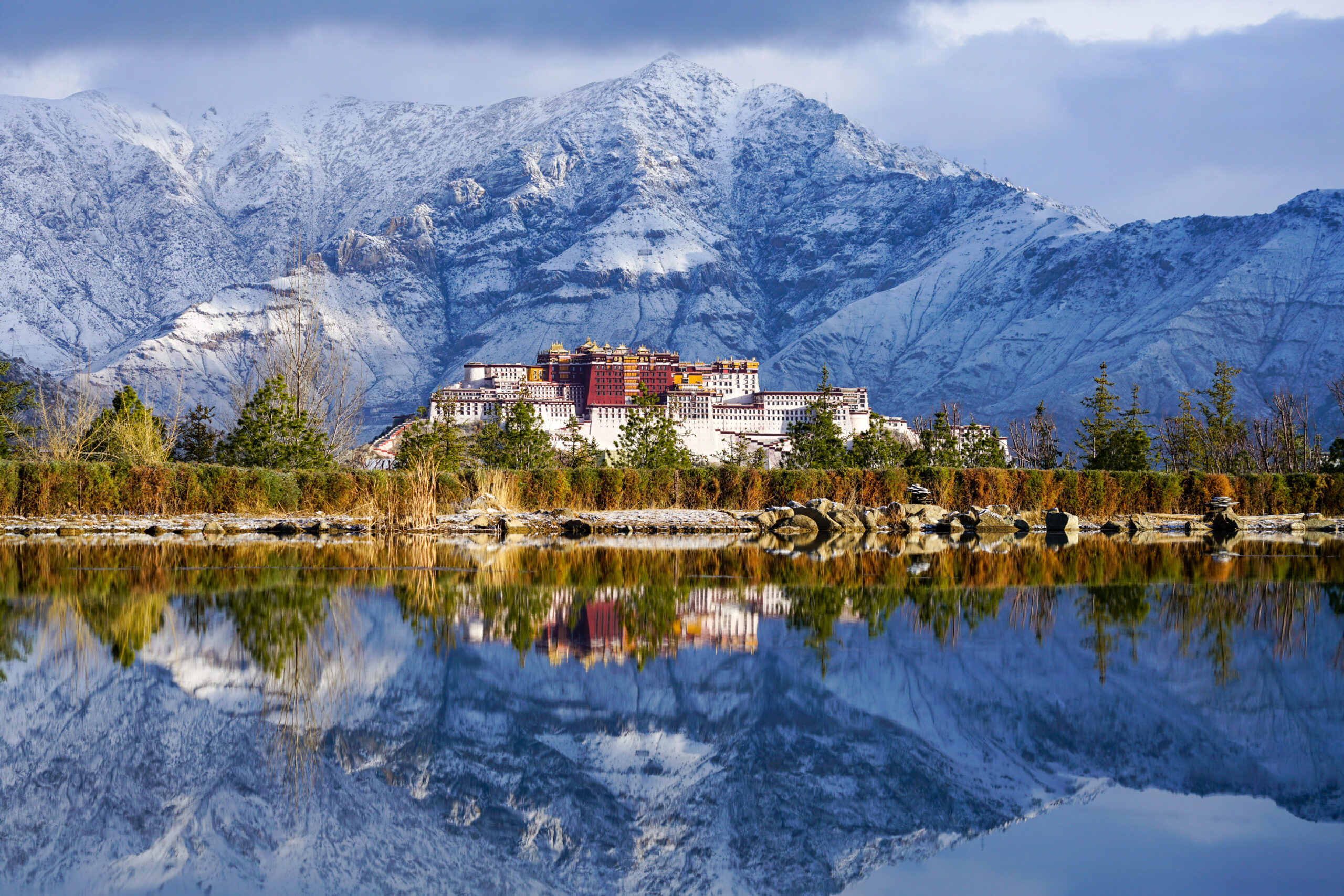 2月28日清晨,布达拉宫与雪山倒映在拉萨南山湖面。当日,海拔3600多米的高原古城西藏拉萨迎来一场春雪,拉萨河两岸延绵的山体犹如披上了一层白纱,景色秀丽。 未经允许不得转载:城市新闻网icitynews » 古城拉萨迎春雪