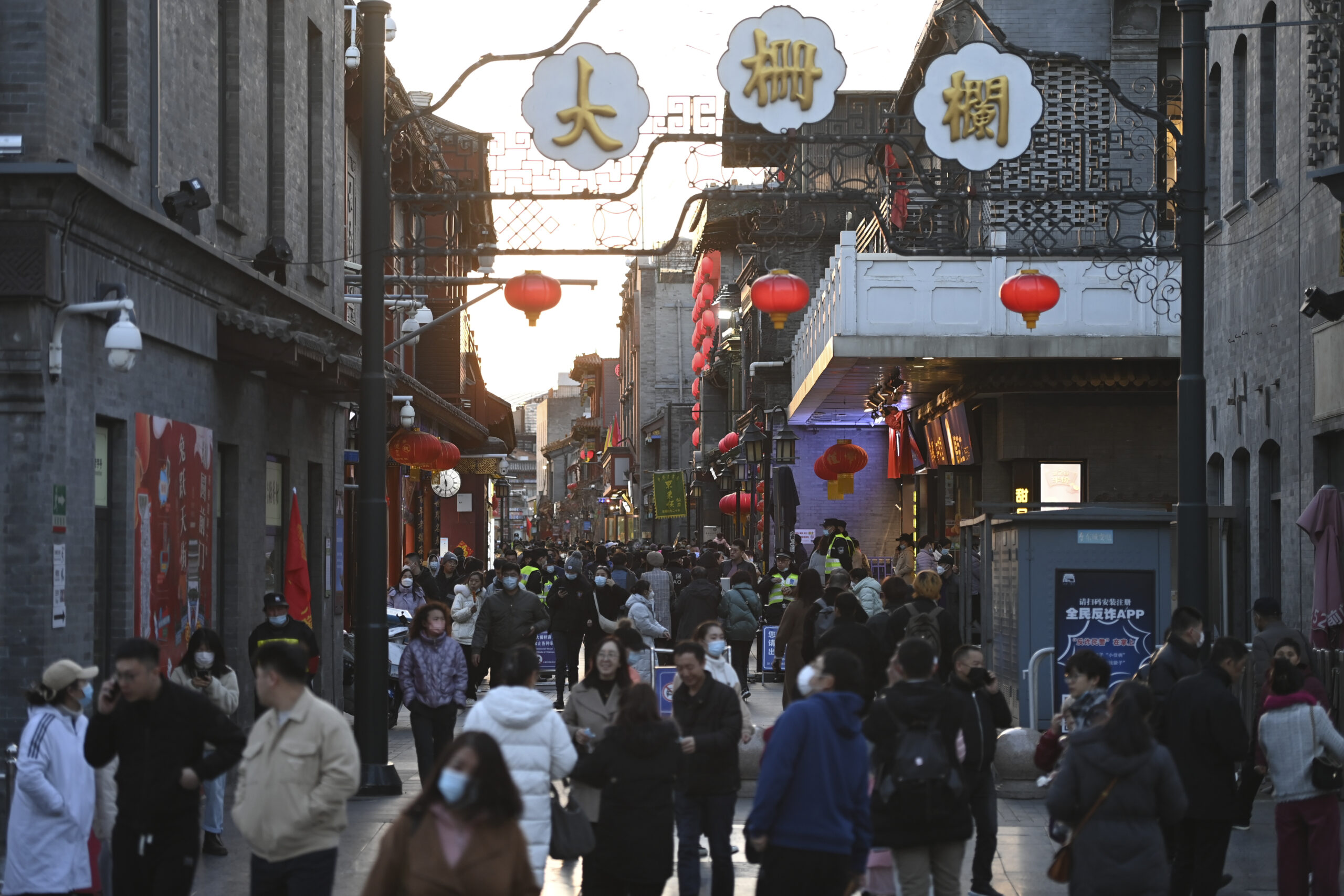 3月1日,游客在北京前门步行街游玩。当日,北京天气晴好,前门步行街游客众多。