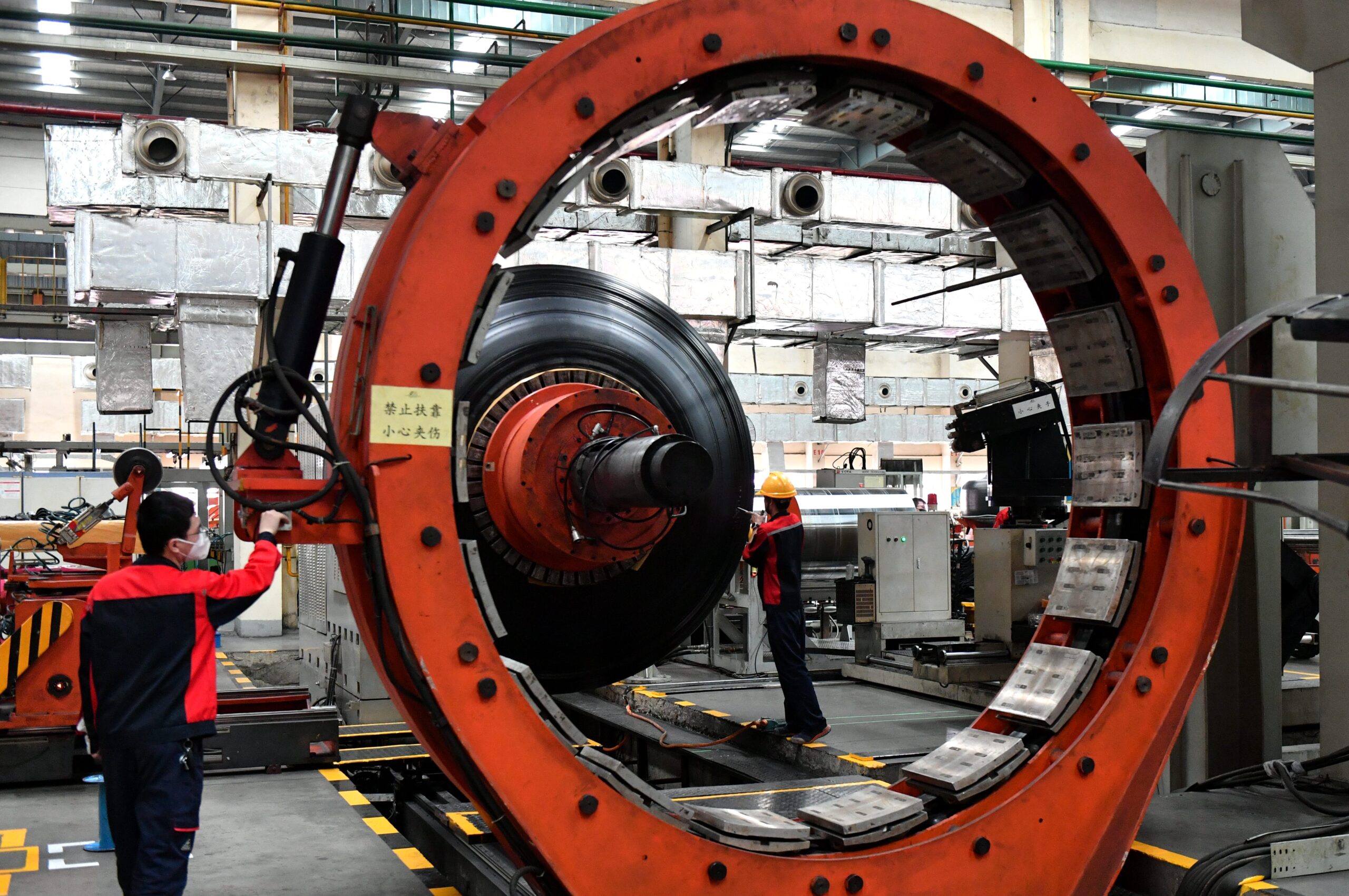 3月1日,中国国家统计局公布,2月份,中国制造业采购经理指数(PMI)升至52.6%,各分类指数均高于上月,调查的21个行业中有18个位于扩张区间,比上月增加7个,制造业景气面继续扩大。图为2月4日,工人在福建莆田一轮胎企业生产车间作业。