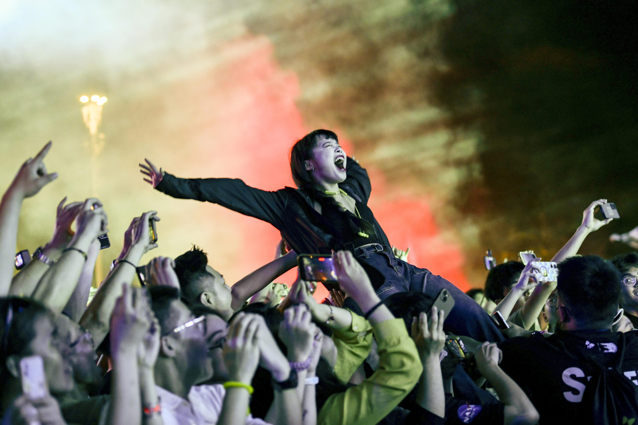 3月19日晚,2023海口迷笛音乐节在海南海口收官。许巍、痛仰乐队、逃跑计划、唐朝乐队等摇滚音乐人在为期三天的音乐节轮番上演经典之作,以飨乐迷。图为音乐节上的乐迷。