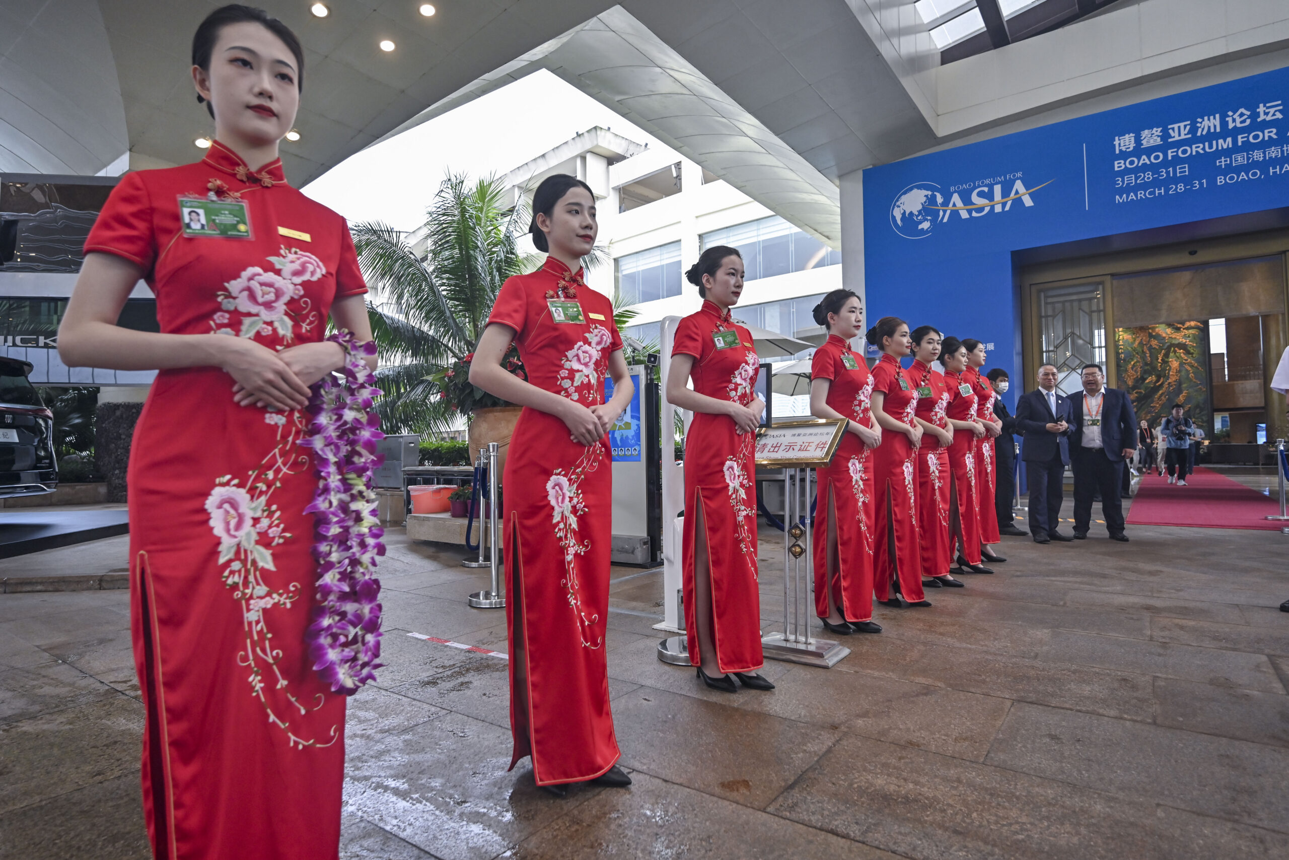3月27日,身着旗袍的礼仪在博鳌亚洲论坛大酒店大堂迎接八方宾客。博鳌亚洲论坛2023年年会3月28日至31日在海南博鳌以线下方式举行。目前,论坛年会各项工作已准备就绪。