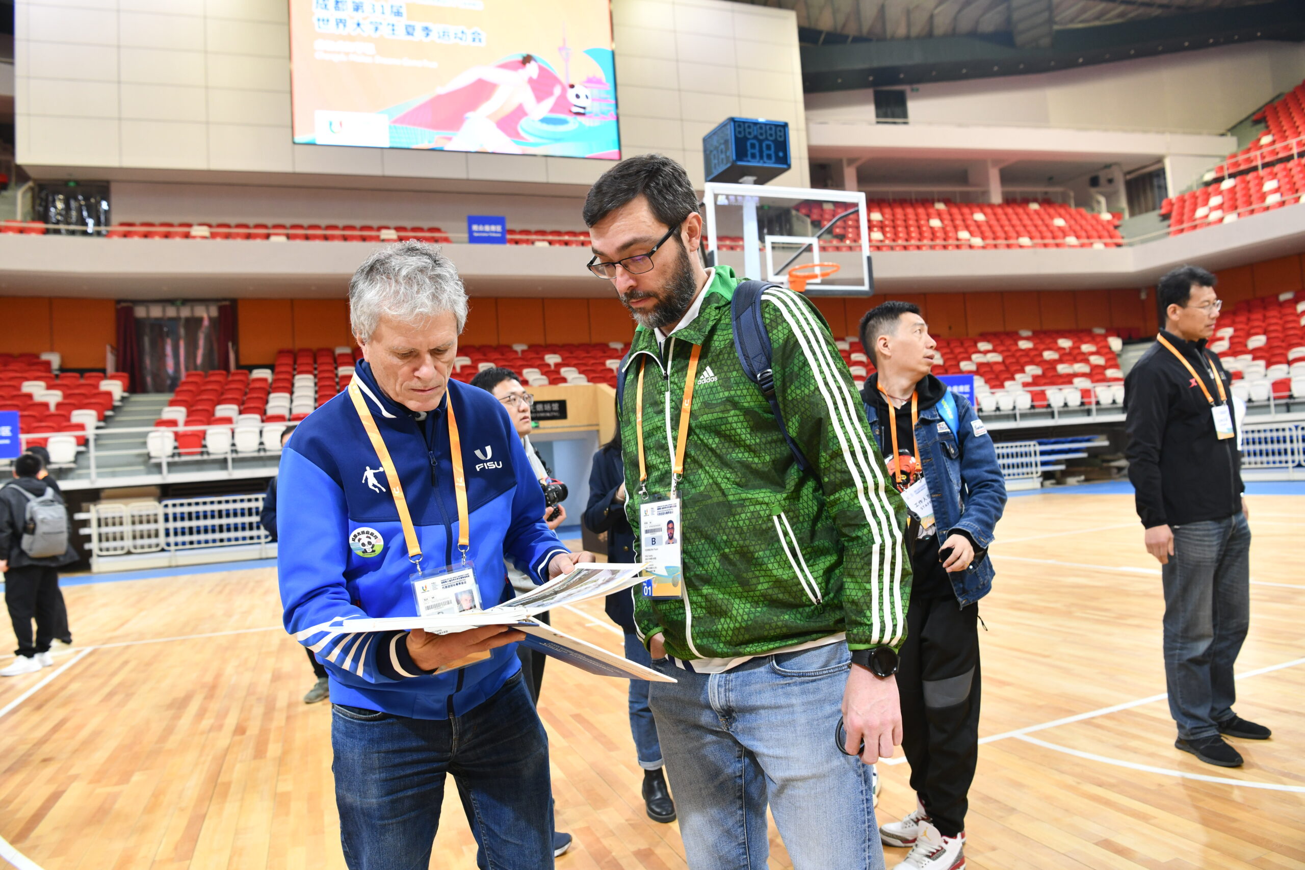3月28日,四川成都,代表团成员在四川省体育馆参观考察。当日,为期4天的第31届世界大学生夏季运动会代表团团长春季会议(简称成都大运会“春团会”)在成都开幕。本次会议共有79个代表团参会,其中33个代表团现场参会,46个代表团通过线上方式参会。