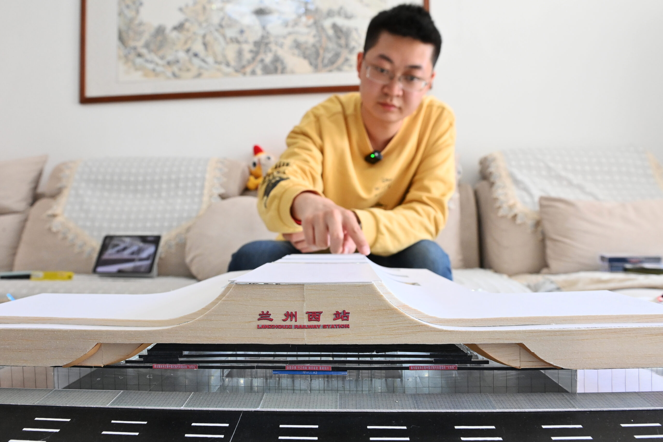 3月29日,甘肃兰州青年朱致远在家中向记者展示自己历时两年完成的兰州西站微缩模型。据了解,该模型近期在不少视频平台走红。1997年出生的朱致远自幼喜欢做模型,在外求学和工作过程中通过自己这项特长制作出兰州西站微缩模型来展示丝路新风貌,该模型较为清楚地还原了兰州西站的细节,如进站口、广告标语及标识牌等,模型也加入带动力的火车模型和照明电路,能够模拟出列车进出站的繁忙景象。兰州西站是中国西部最大规模的路网型铁路客运枢纽站,也是中国铁路总公司规划的十大区域性客运中心之一。