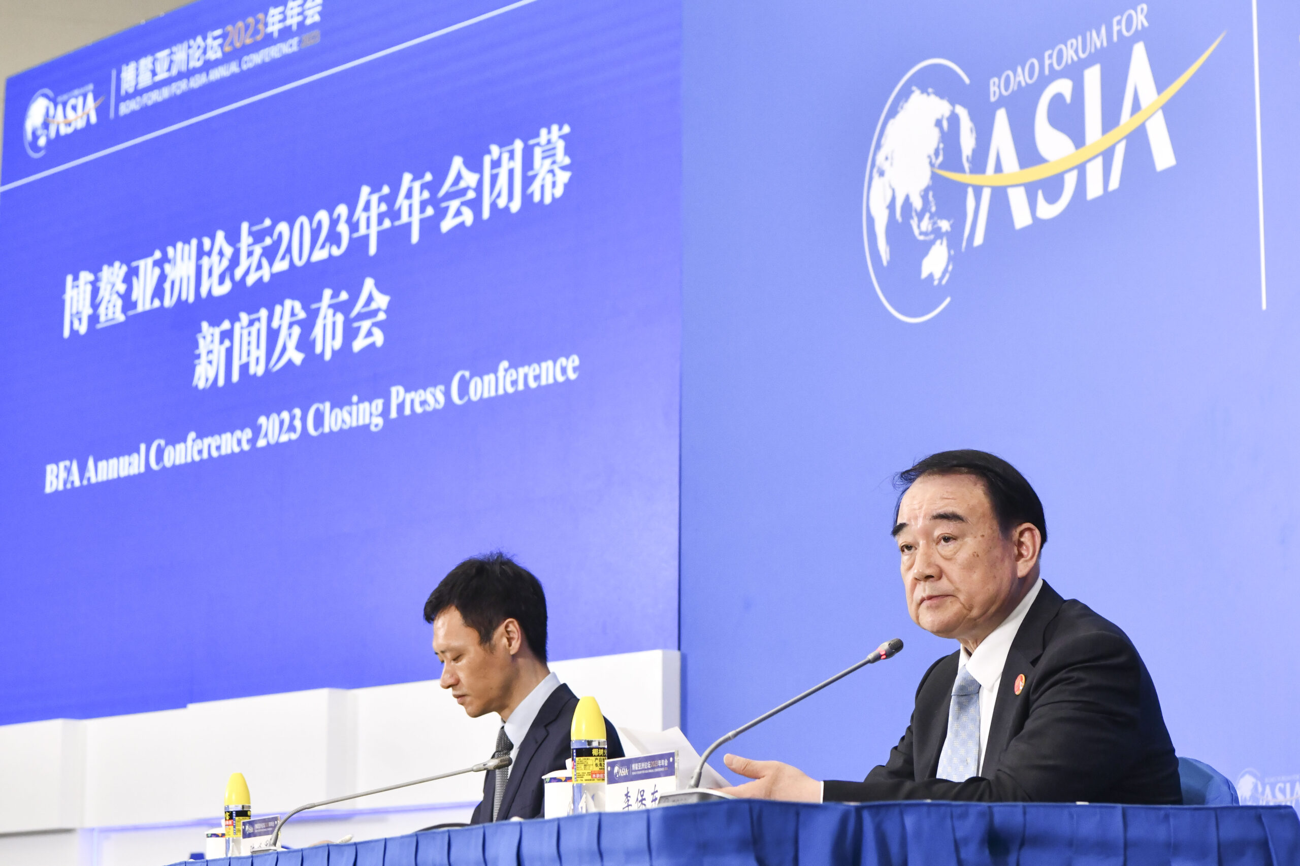 3月31日,博鳌亚洲论坛秘书长李保东(右)在年会闭幕新闻发布会上。当日下午,为期4天的博鳌亚洲论坛2023年年会在海南博鳌落下帷幕。 未经允许不得转载:城市新闻网icitynews » 博鳌亚洲论坛2023年年会闭幕