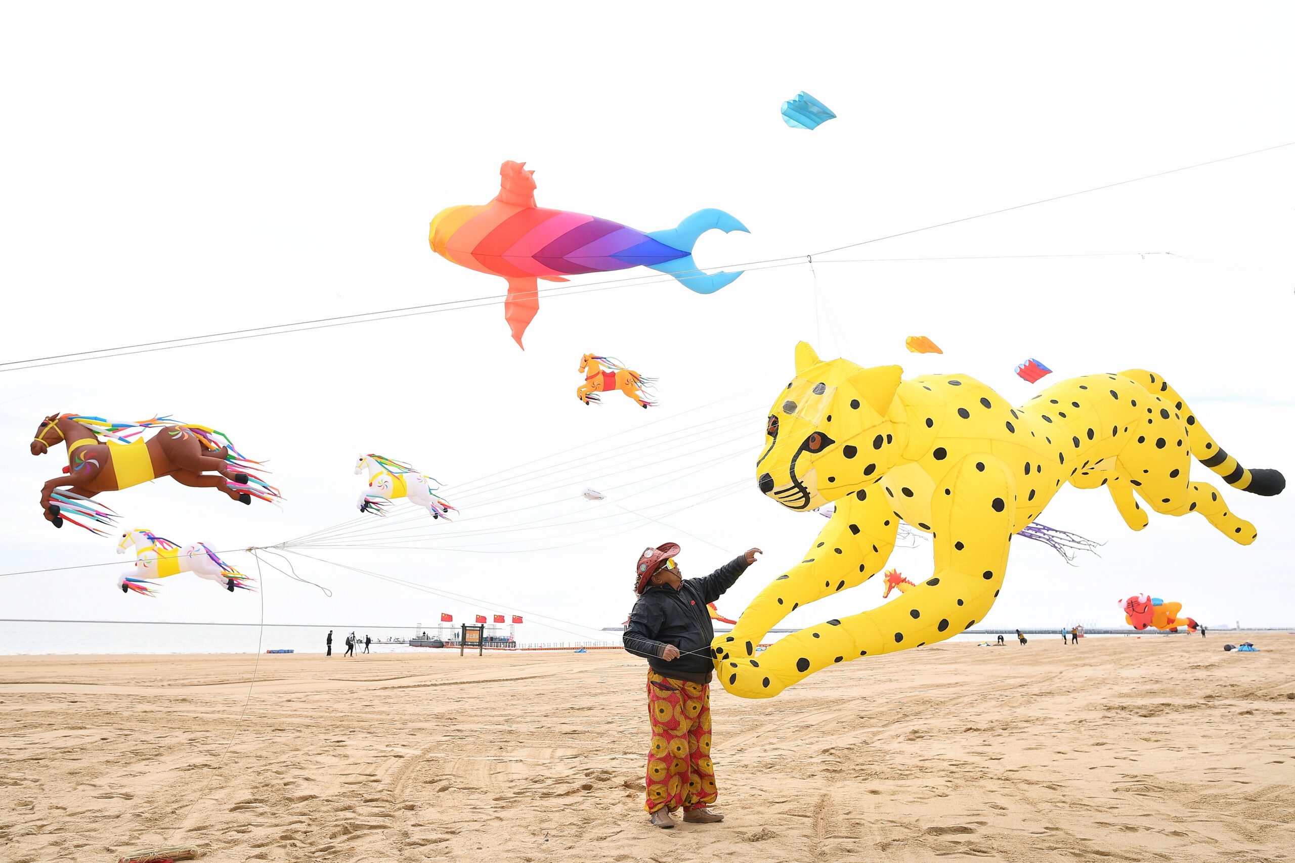 4月5日,2023天津滨城·东疆湾沙滩风筝节在天津东疆湾沙滩景区举行,不同造型的软体风筝扮靓海滨天空,吸引市民前来观赏。图为专业放飞手放飞大型软体风筝。 未经允许不得转载:城市新闻网icitynews » 天津:大型风筝展飞扮靓海滨天空